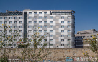 Because of the steep slope the garage and basement rooms are situated on the ground floor. The first floor is separated in two parts. To the left, there is a two-room guest apartment with separate access and a small garden. For now it is rented. To the right there is a large teen room with bathroom for the son. If he gets older, he could move into the accommodation next door. If he is starting his own family, he could easily connect the two-room apartment with his earlier child’s room to create his private three- or even four-room flat.