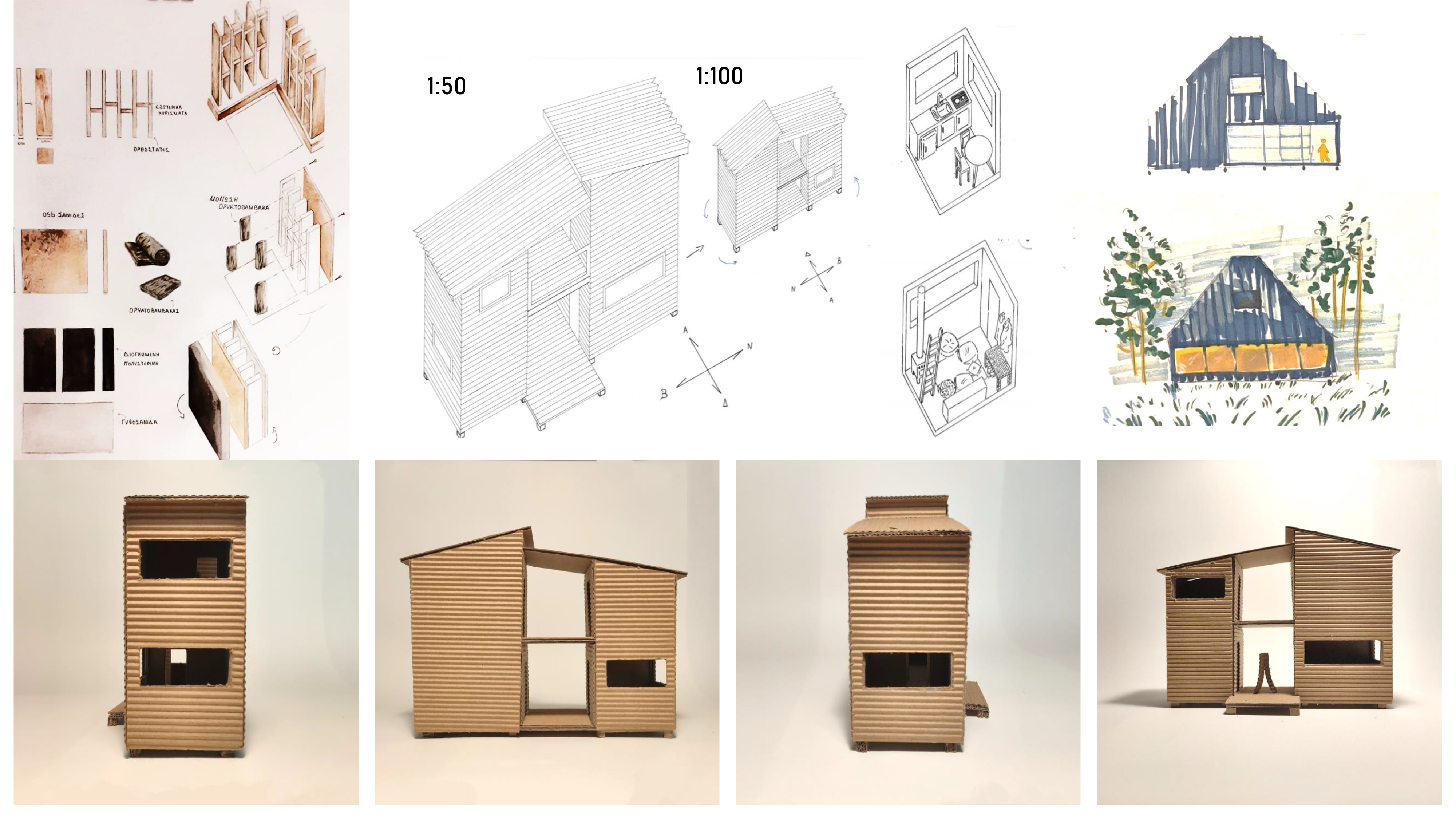 This was the first project that we created together during our first year at architecture school. It was more than just a project; it marked the beginning of our journey into architecture and became the starting point of a friendship that has lasted ever since. Bridge House is located in a coastal area in Sweden. The house can be described as somewhat isolated from the busy pace of everyday life, yet closely connected to nature, as it is surrounded by tall coniferous trees and low vegetation on its eastern side. The western side of the house opens toward a view of the archipelago. The residence consists of two volumes and four spaces: two primary-use spaces and two secondary-use spaces. The two volumes are connected by a corridor on the second level, which resembles a bridge—hence the name Bridge House. In addition, the house is covered by a single sloped roof that visually unifies the two volumes, making them appear as one structure. The proposed construction materials include oak wood for the structural elements and exterior cladding, gypsum board for the interior walls, dark metal sheets for the roof, and double-glazed glass for the window frames.