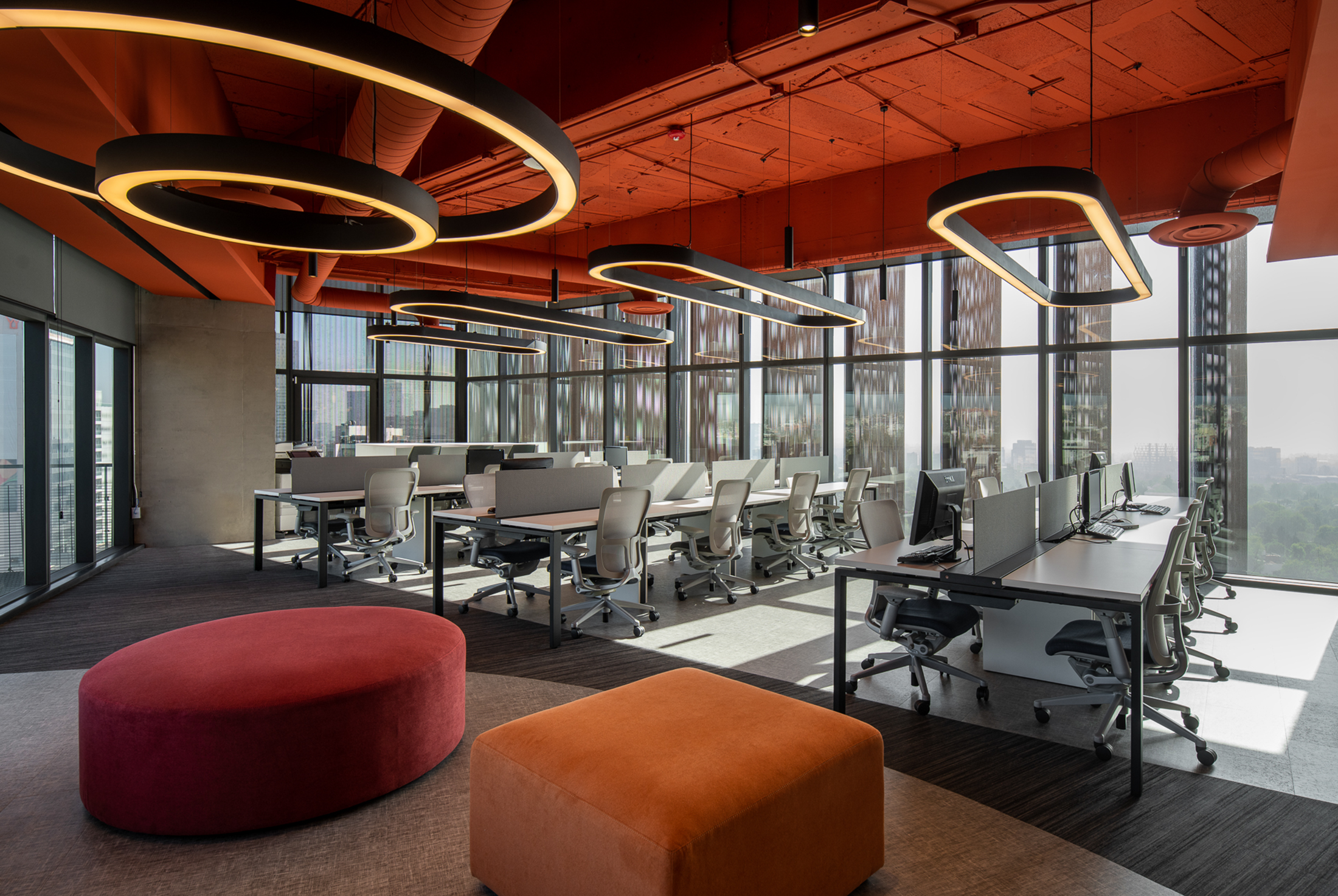 The design of Revlon's offices is based on a clear premise: creating a workplace that expresses brand identity, while responding to new ways of working shaped by flexibility and remote collaboration. The project optimizes corporate space by placing user well-being at its core, and by fostering collaboration, creativity, and community. The layout is organized into three zones: a permanent staff area positioned along the best city views, an open