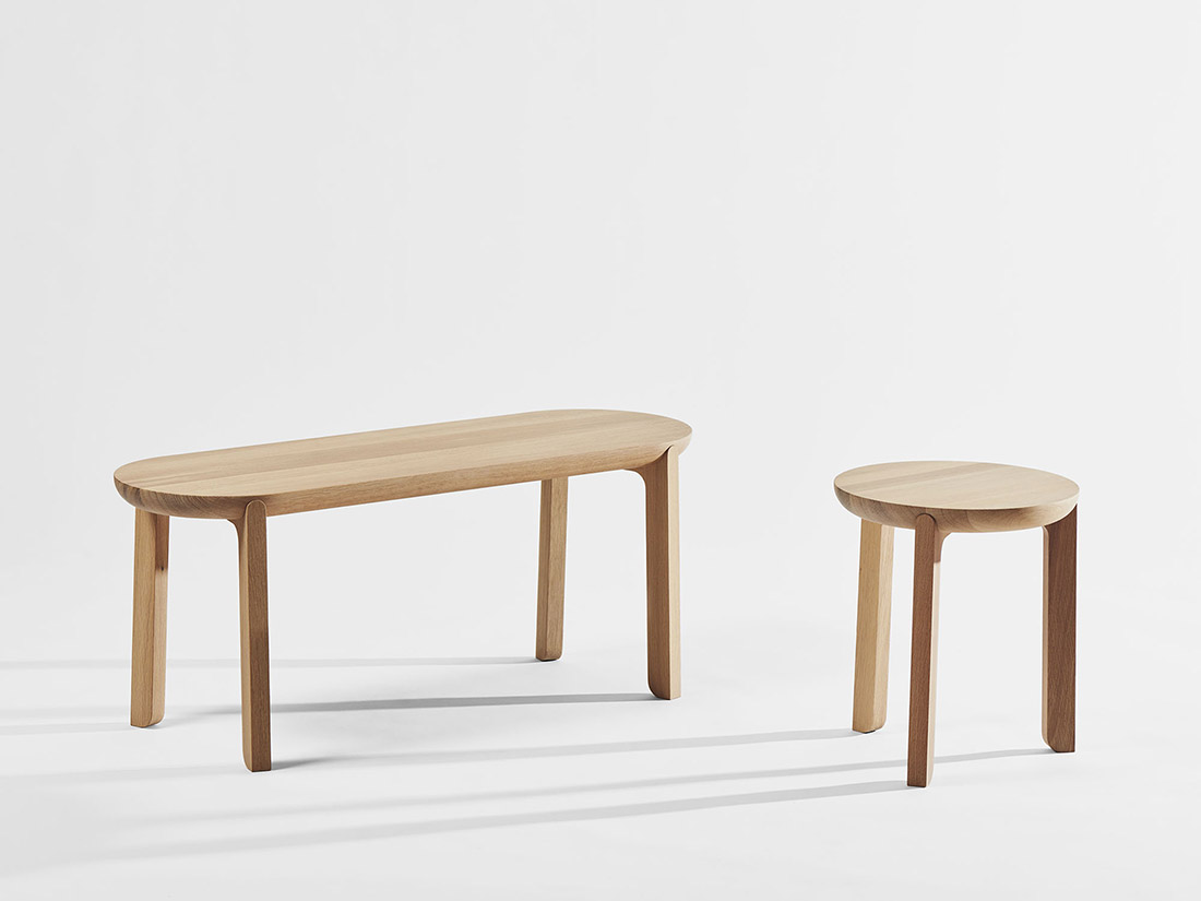 The collection includes coffee tables, a bench, bar stools, and tabourets. Each piece translates the simple rounding principle of Jánošík’s hat into precise, functional design. The coffee tables, available in two sizes, can be arranged in various compositions and optionally combined with the JURO tabouret. The result is furniture that not only serves its purpose but also tells a story, bringing a touch of Slovak heritage into modern interiors.