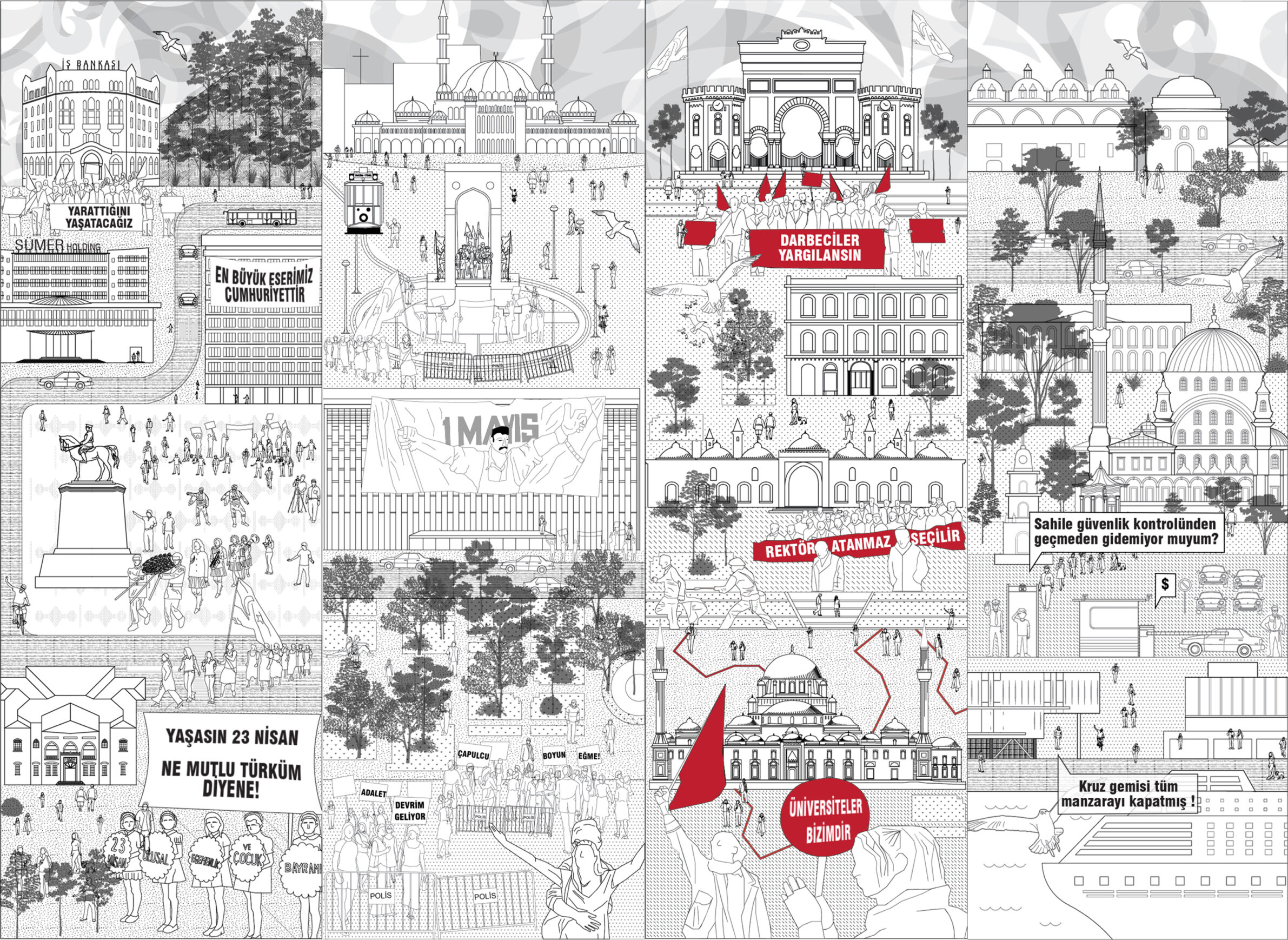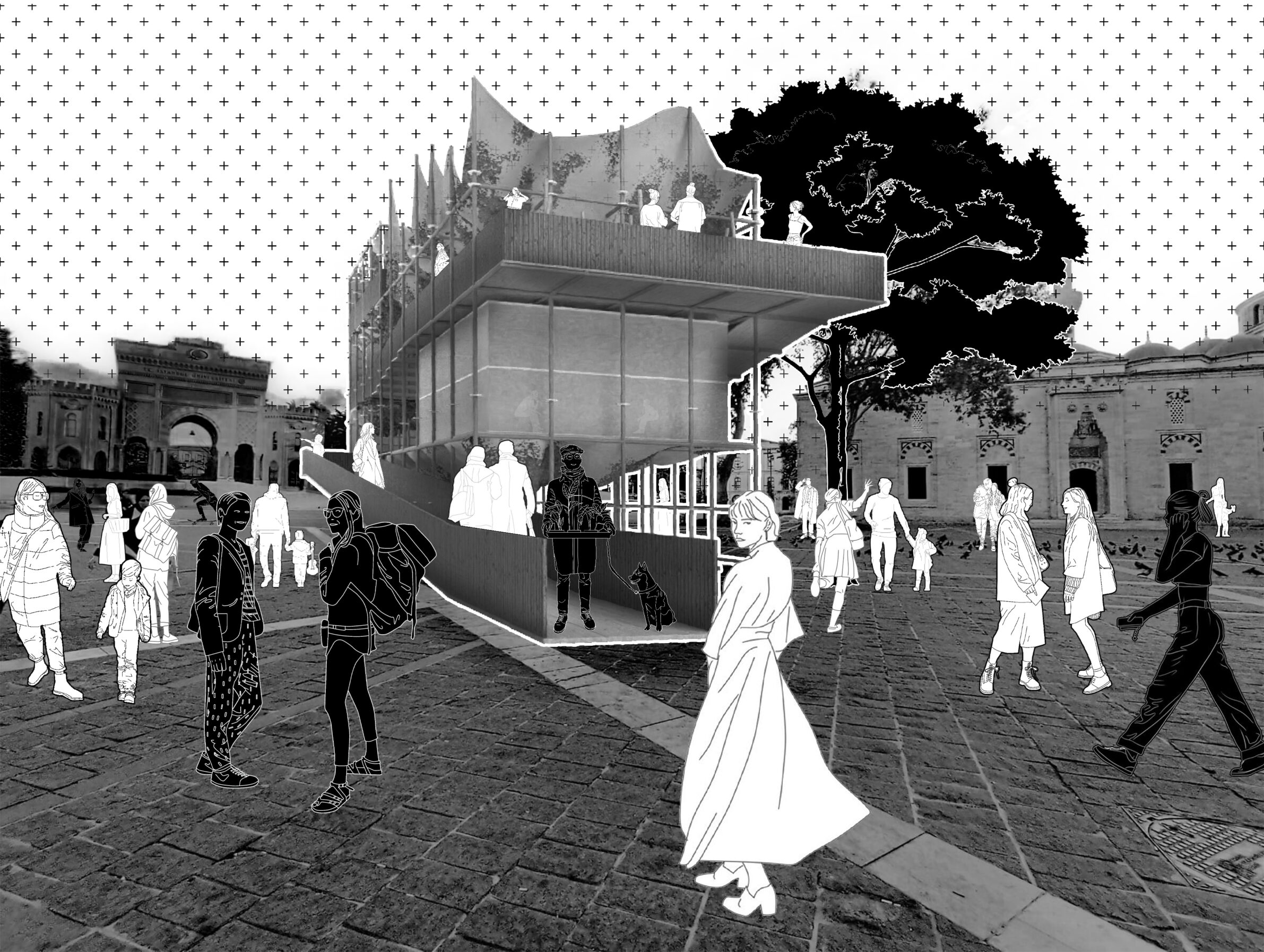 Public identity materializes in neighborhoods, where individuals recognize themselves as civic actors and collective memory takes shape. Yet contemporary cities are experiencing a crisis of public space, as mechanisms of power transform even minor acts of dissent into polarized conflict. This condition erodes individual agency and fragments neighborhood identity. Set in Beyazıt Square, the project proposes a contemporary agora—an adaptable civic framework that restores visibility to the individual within the collective. Through small-scale, strategic interventions, it reactivates the square as a space of encounter, mediation, and shared authorship.