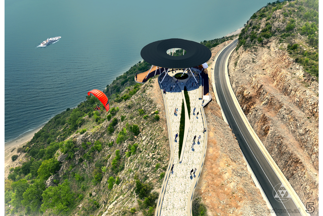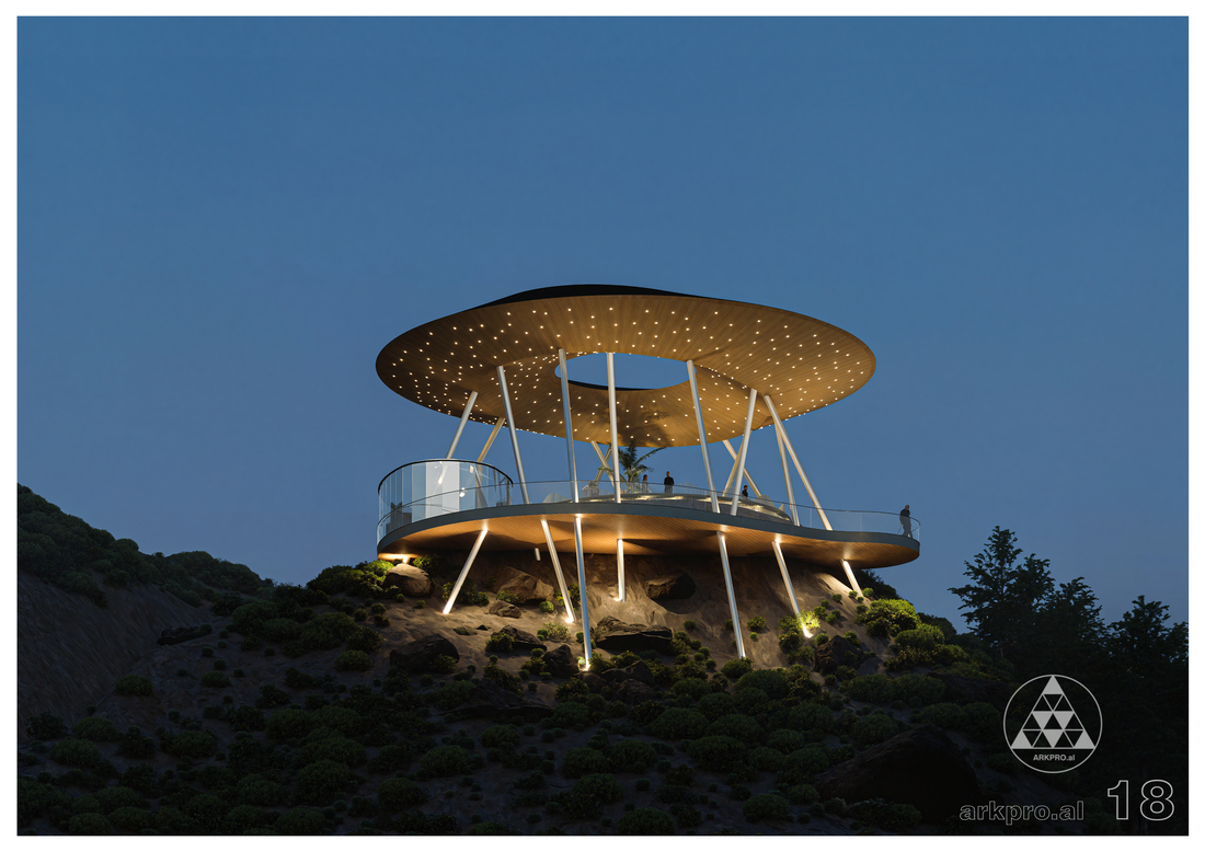 THE EYE project is envisioned as a unique destination along the new Shëngjin–Velipojë coastal road, offering a harmonious blend between contemporary architecture and the wild natural landscape of the coastline. This viewpoint is designed as a public pavilion that serves as a scenic overlook, a pedestrian zone, and a series of balconies positioned to capture breathtaking views of the Adriatic Sea.