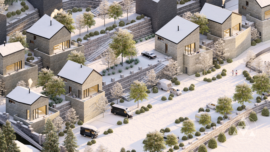 This residential development reinterprets the traditional hillside village through a contemporary lens, creating a cohesive and sustainable community that blends seamlessly with the natural terrain. Designed with a stepped layout, the project utilizes the site's slope to maximize privacy, sunlight, and panoramic views for each unit, while minimizing the visual impact of the built form on the landscape.