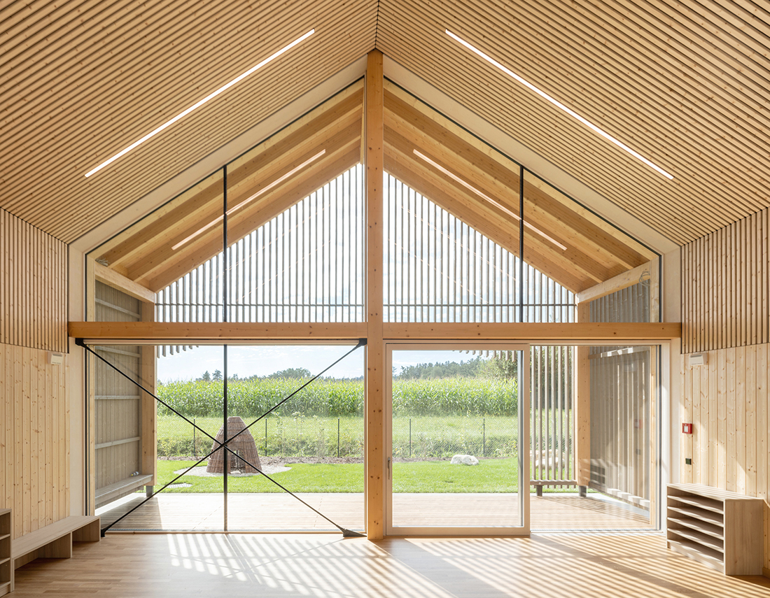 Energy Concept: Great emphasis was placed on ecological construction: the building uses a timber-frame system with sustainable, regional materials.