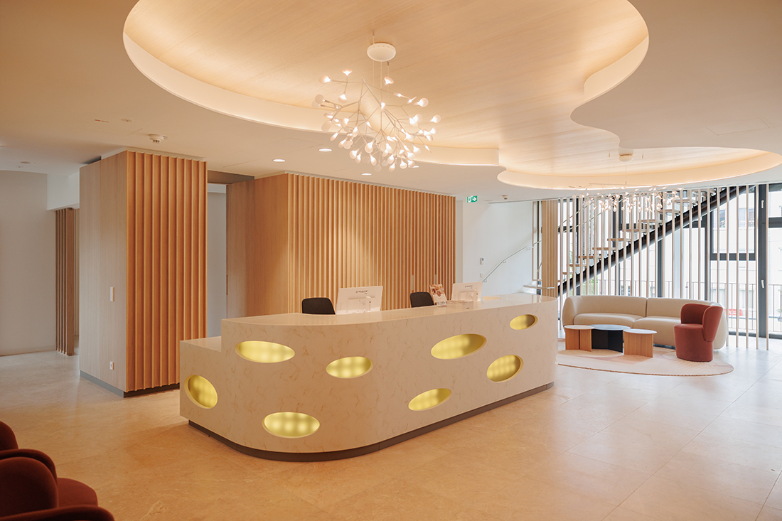 Klinik “Feminin” is a new healthcare center in Vienna’s 19th district, seamlessly combining cutting-edge technology with a warm and welcoming atmosphere. To meet sustainability goals, we used Porotherm bricks with a clinker façade, providing excellent insulation and allowing for the exclusive use of geothermal heating while also extending the façade’s lifespan.