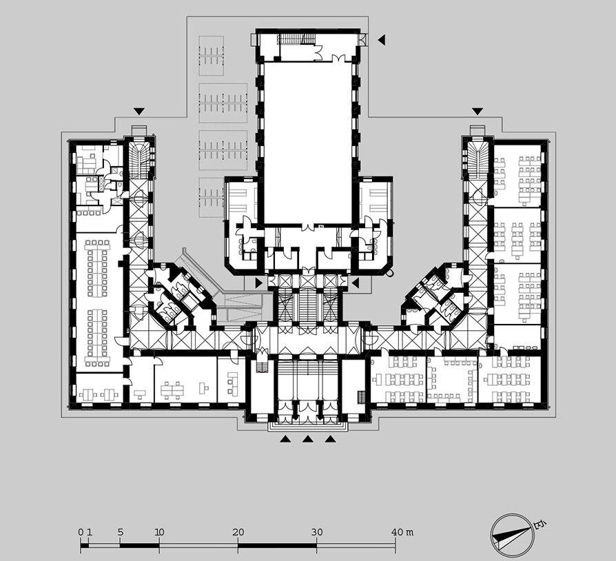 A barrier-free ramp and a modern internal lift were added, while windows were replaced and doors renovated. Mechanical and electrical systems were completely updated, including a new heat pump heating / cooling system. The gym wing was rebuilt, solar panels installed, and the building insulated, with reinforced supporting structures.