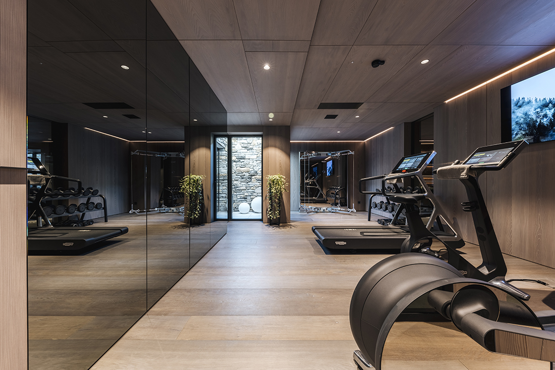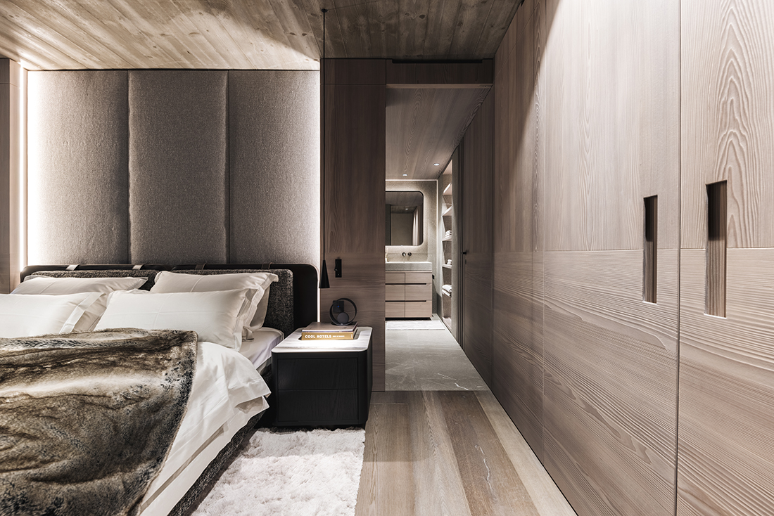 The living and dining areas reflect the chalet’s distinctive design language. A refined mix of materials – fine fabrics, leather, and carefully selected accessories – paired with elegant furniture from leading Italian brands Minotti and B&B Italia, creates an extraordinary and timeless ambiance.