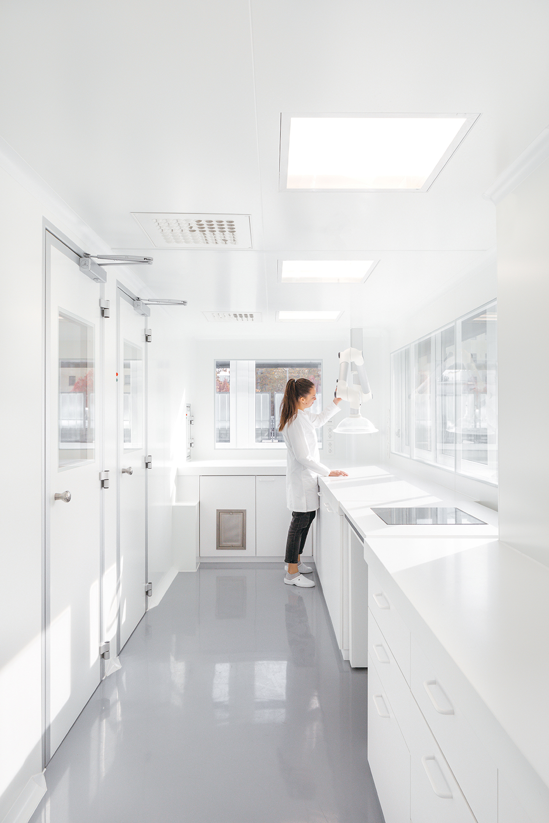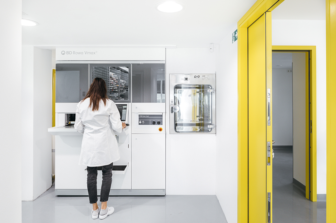 In collaboration with a technologist, we designed cleanrooms with sterile laboratory walls for the pharmacy’s compounding department, as well as dedicated areas for preparing custom-made medications. The highest safety standards are upheld through advanced access control systems.
