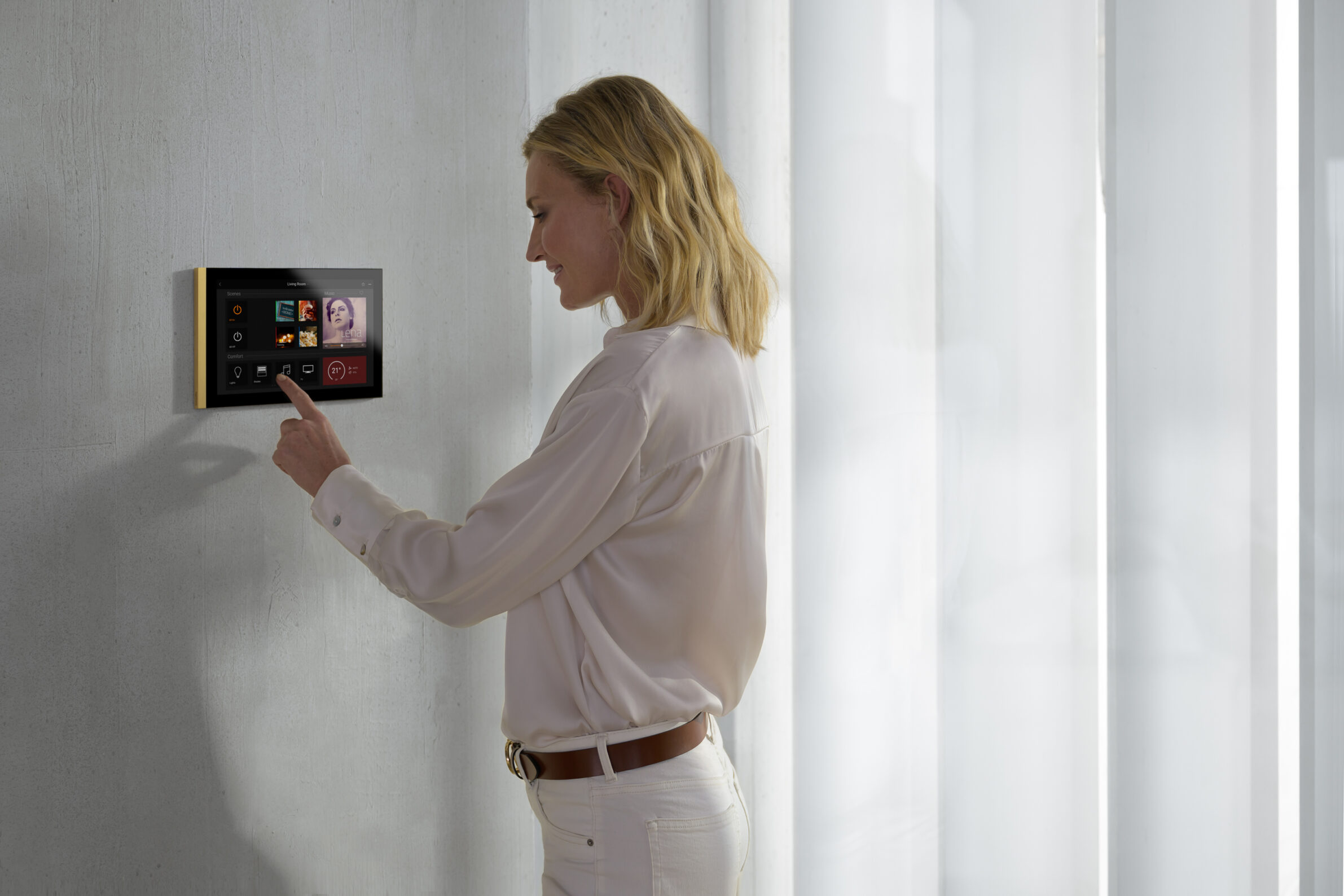 Basalte designs products for the intelligent home. Its products are created to keep things simple, intuitive, and elegant, both in form and in function. Reduced to their essence, they are always intended to improve the comfort of the modern home. They blend with interior design and outdoor architecture thanks to their uniform design language. Precision-machined with premium finishes and handmade with love in Belgium. Lena, Basalte’s flagship touch display, completes the range alongside Lisa and Ellie as the flagship touch display for Basalte Home. Its full HD 10.1” LCD touchscreen provides a clear overview of the intelligent home. It allows users to easily control lights, shades, scenes, music, and temperature in any room of the home. It comes in premium finishes to perfectly match any high-end interior and Basalte’s other design products. This refined touch display also functions as an indoor station for Basalte’s luxury door phone, Adelante. Seeing who is at the doorstep, answering the door phone, and letting visitors in has never been smoother. Lena also offers an intercom function with other Lisa, Ellie, and Lena displays. Users can even view their security cameras at a glance.