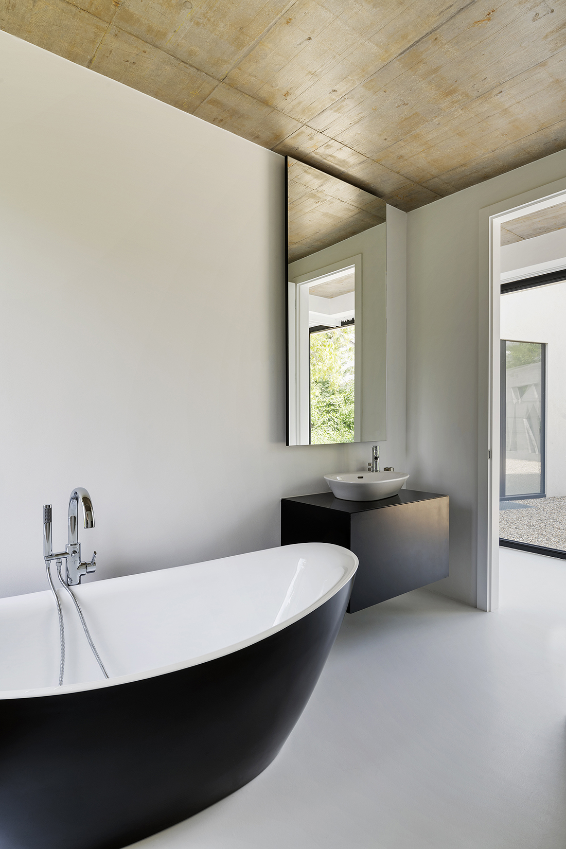 The house harmonizes with its surroundings through its scale and geometric design. Built in a contemporary style, the villa’s minimalist exterior contrasts with its warm, bohemian interior, making it a welcoming and livable space for families with young children. Constructed in two stages over nearly a decade, the house embodies a modular approach to design, prioritizing flexibility and financial efficiency.
