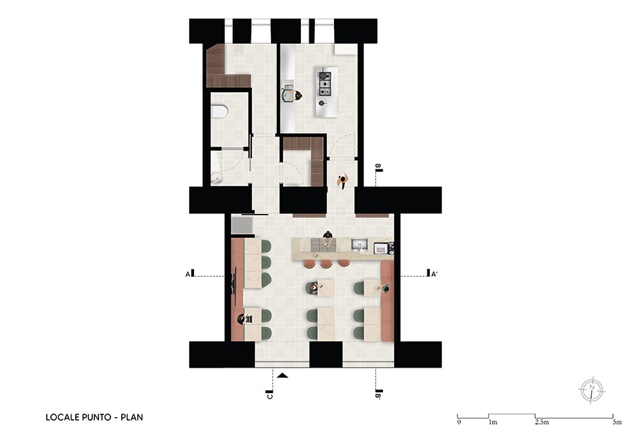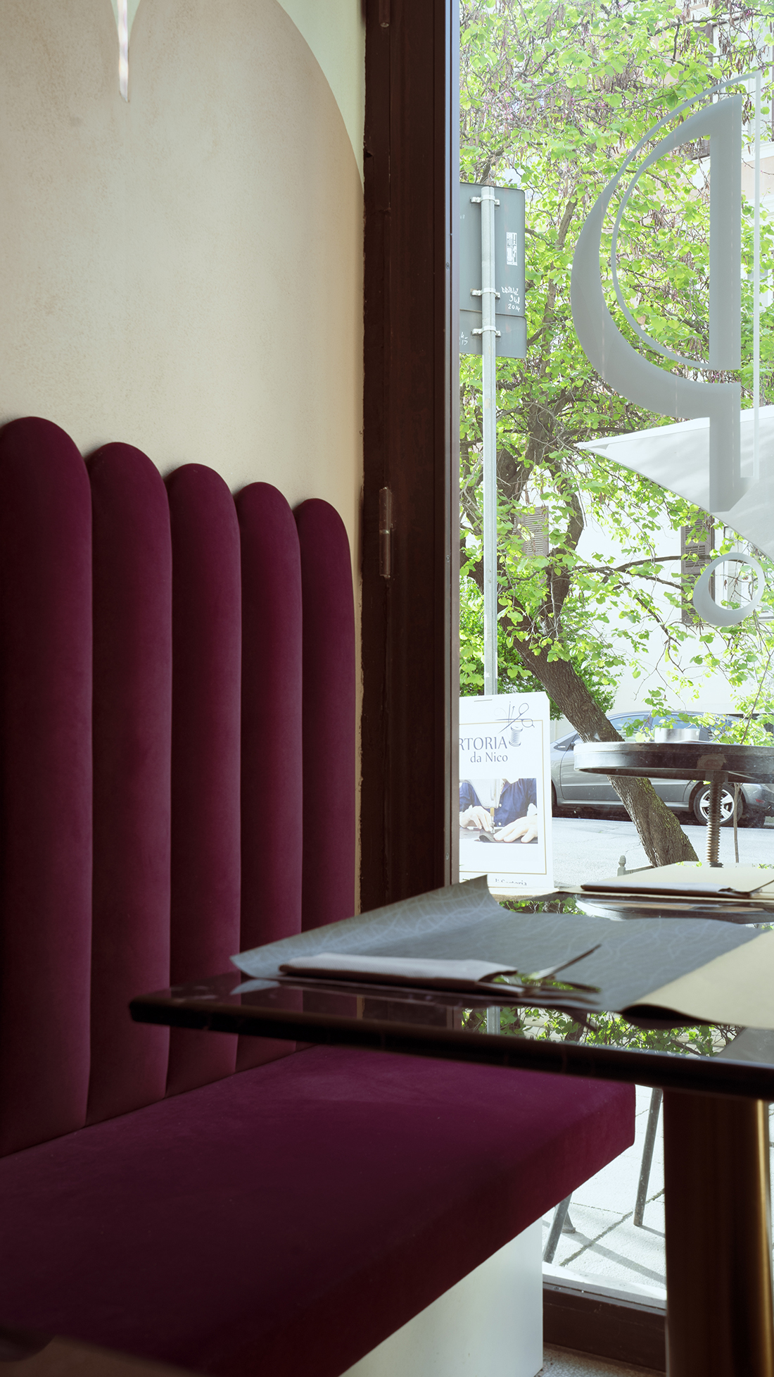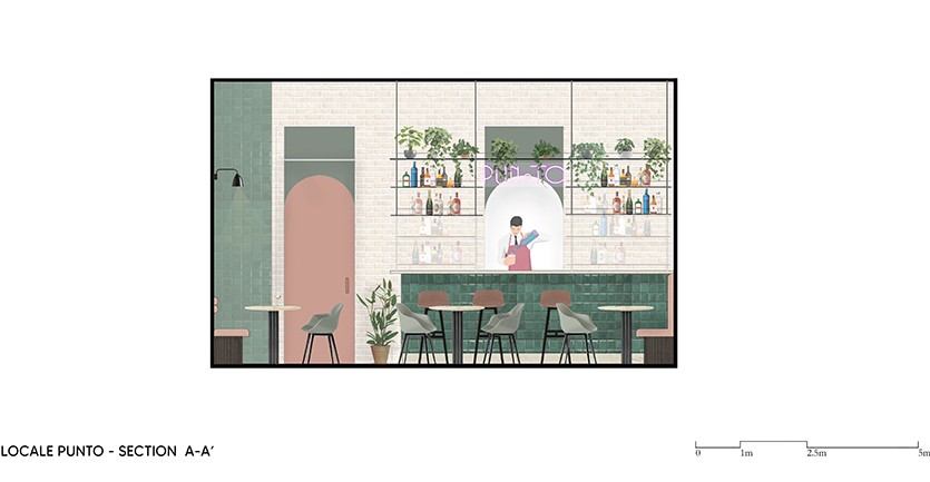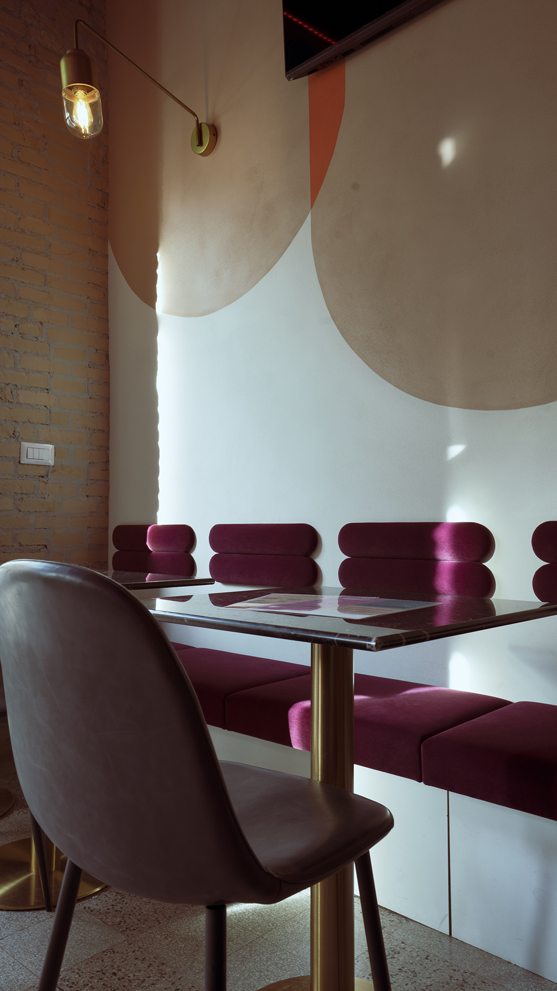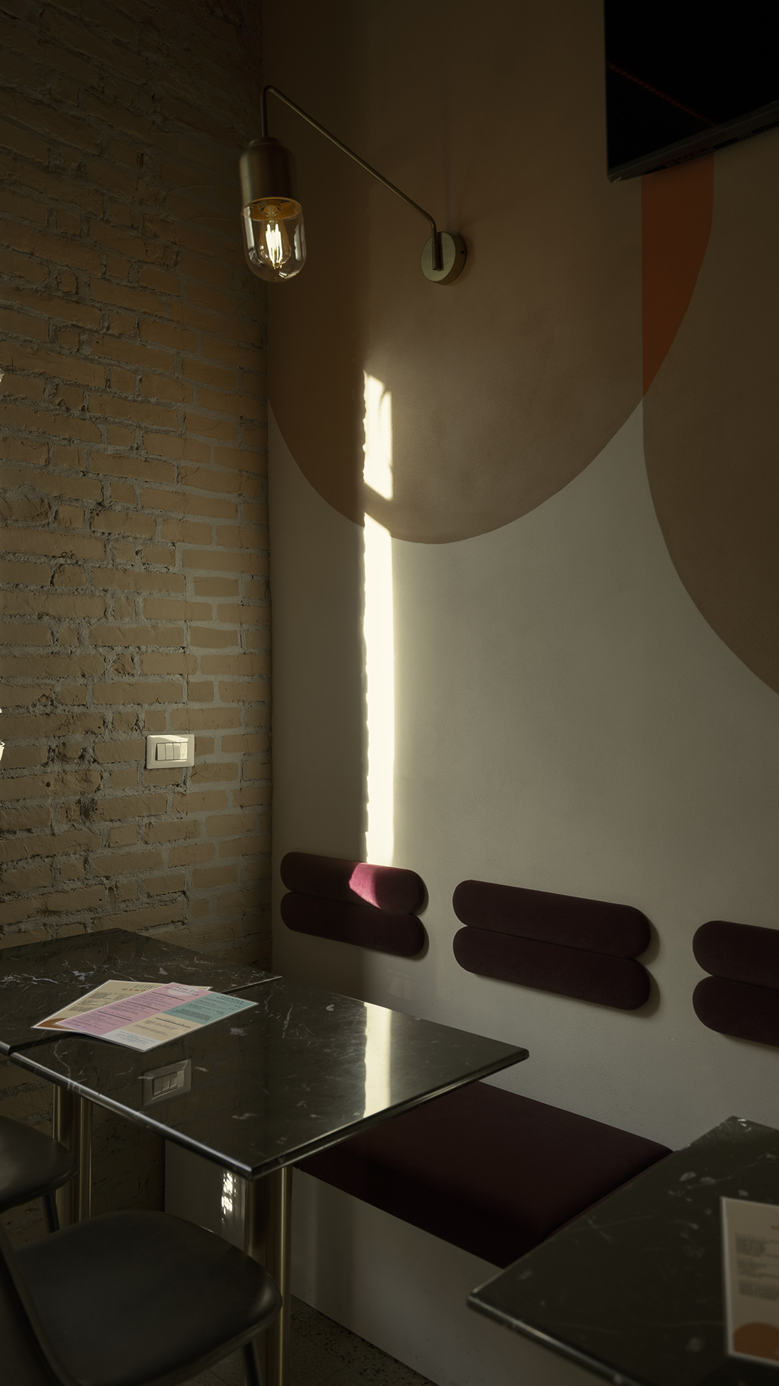 The concept balances the eclectic identity of the area with the distinctive gastronomic and beverage offerings curated by the young owners. Innovative shapes and materials seamlessly integrate with original architectural elements – such as exposed brickwork and terrazzo floors – emphasizing the harmony between Roman heritage and a cosmopolitan spirit.