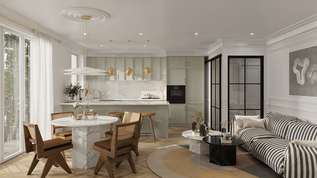 This London apartment was designed as a calm and elegant, contemporary home with a strong sense of flow and functionality. The layout creates a seamless dialogue between living, dining, and private zones, allowing the apartment to feel both spacious and intimate. Classic architectural details are paired with contemporary elements, giving the interior a balance between timelessness and a playful, modern character.