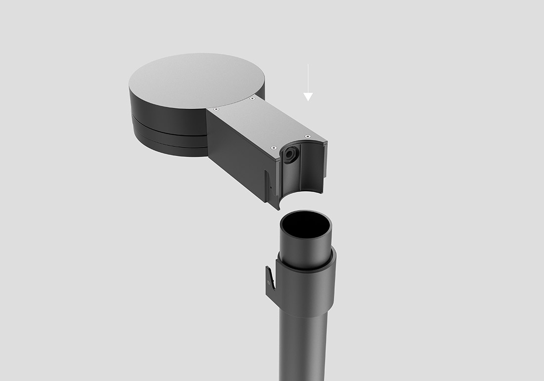 The intersection of block and cylinder elements in the design enhances its symbiosis with public spaces, offering a timeless, non-invasive aesthetic. The luminaire’s compact size and durable construction provide increased resistance to extreme weather conditions and vandalism.
