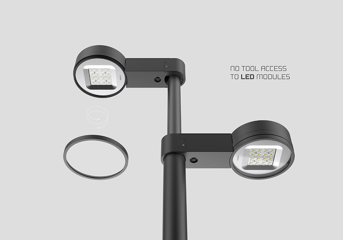 A standout feature of the Lumen Lupa is its No-Tool Access system, allowing for quick and hassle-free servicing of the main electrical components and LED modules. This ensures that maintenance is efficient, making it a practical choice for urban environments.