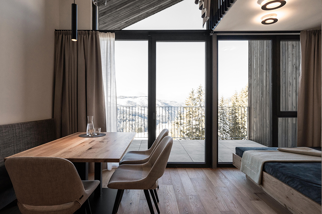The result is a composition of transparency and intimacy – a retreat embedded in nature, offering both sanctuary and space for discovery in the rhythm of the mountains.