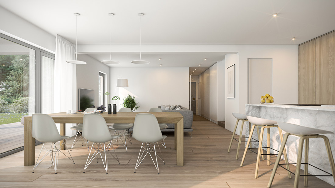 Due to various roof designs, this model of house is sensibly positioned both in urban environments and in the Slovenian countryside. The choice of facade solutions allows each individual to creatively express themselves. For this purpose, a thoughtful and refined selection of bathrooms, flooring made of natural materials, as well as building furniture has been further developed. Modular choice has never been so imaginative, inspiring, yet simple for future residents.
