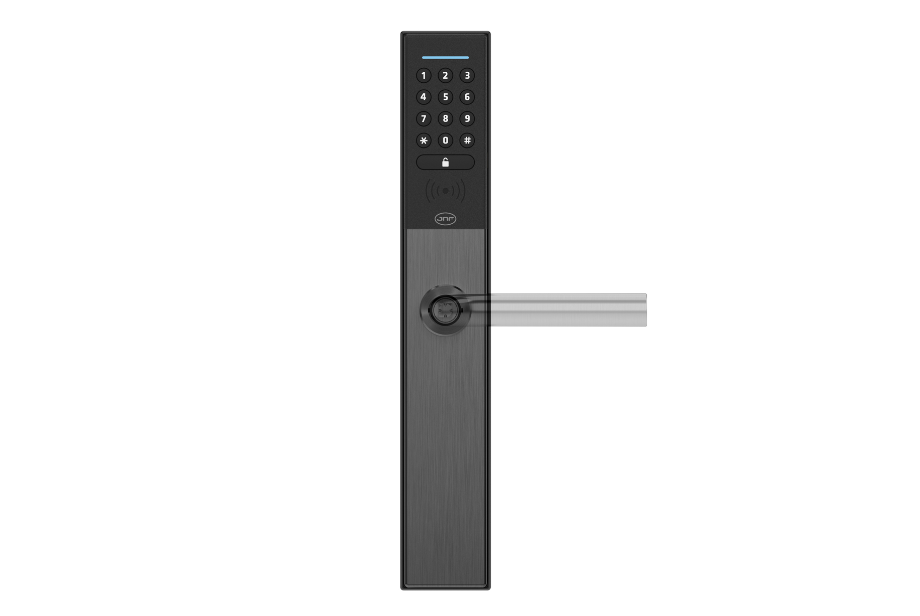 Blind plate on both sides. Possibility to choose multiple models of JNF mortice locks (not included) – IN.20.601.R (recommended). Possibility to choose multiple models of JNF handles (not included). Possibility to choose several models of JNF European cylinders (not included) – (recommended the installation of mechanical cylinder, stays hidden and accessible in case of emergency).