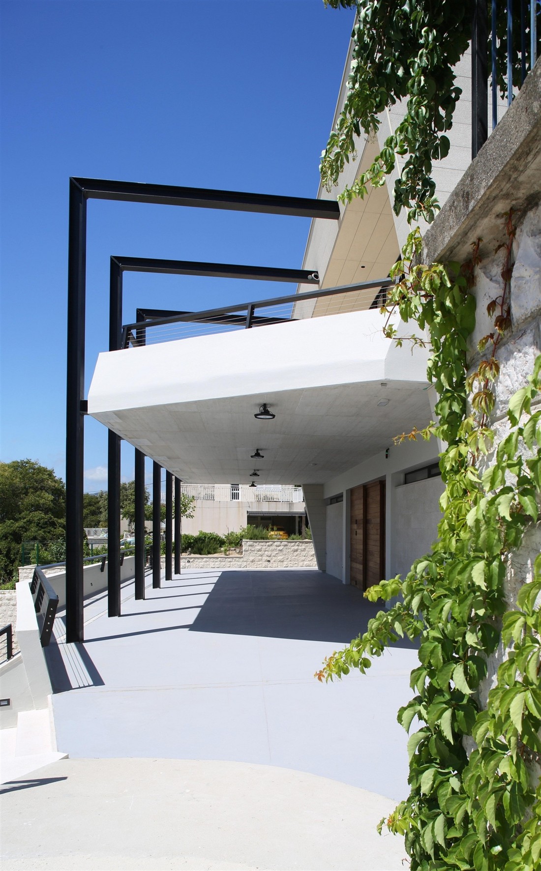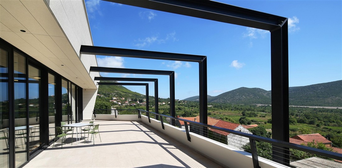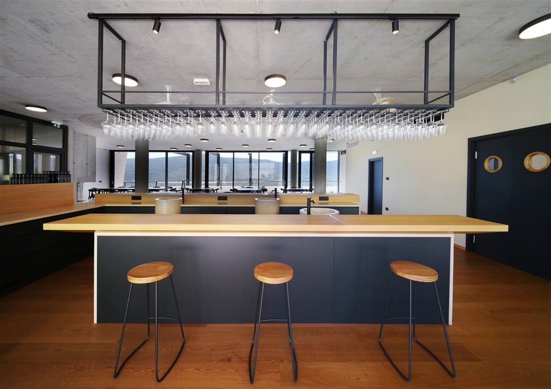 The concept is based on the idea of a gateway, a temple to wine. The structure is set deep into limestone rock and consists of 3 volumes: a wine storage cellar, a ground floor for processing and barrelling, and a tasting room with panoramic views above. It demonstrates that modern production techniques can have minimal visual impact and intrusion on its historical habitus. The solution was a volume penetrating deep into the limestone hill, tunneling its way to the existing rock cellars of the family home, forming a connected, compatible, contemporary intervention. Materials are concrete and glass. A ventilated façade of artificial & natural stone permits the above ground structure to “breathe”. The green roof, 75% buried volume, and cross flow ventilation create exceptional energy efficiency & maintain a constant internal environment. External landscaping emphasizes indigenous greenery, with integrated shading & terraced garden areas.