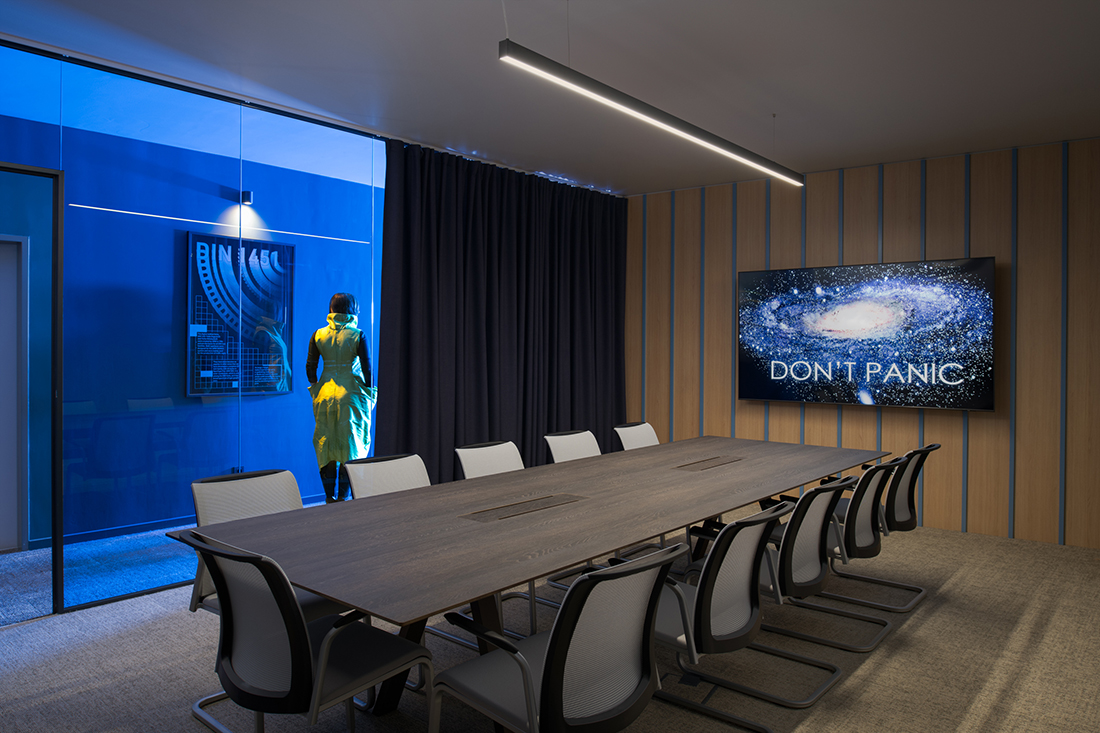 Mireo’s new office is designed as a contemporary, inspiring workspace that goes beyond traditional office norms, drawing inspiration from the worlds of Star Trek and The Hitchhiker’s Guide to the Galaxy. The design highlights diversity, inclusion, and creative freedom, with a strong focus on employee well-being and inspiration.