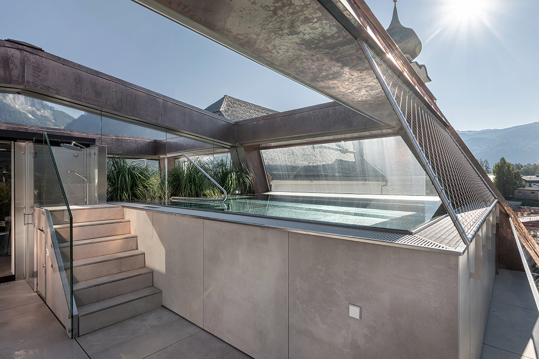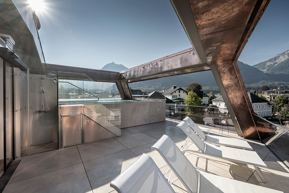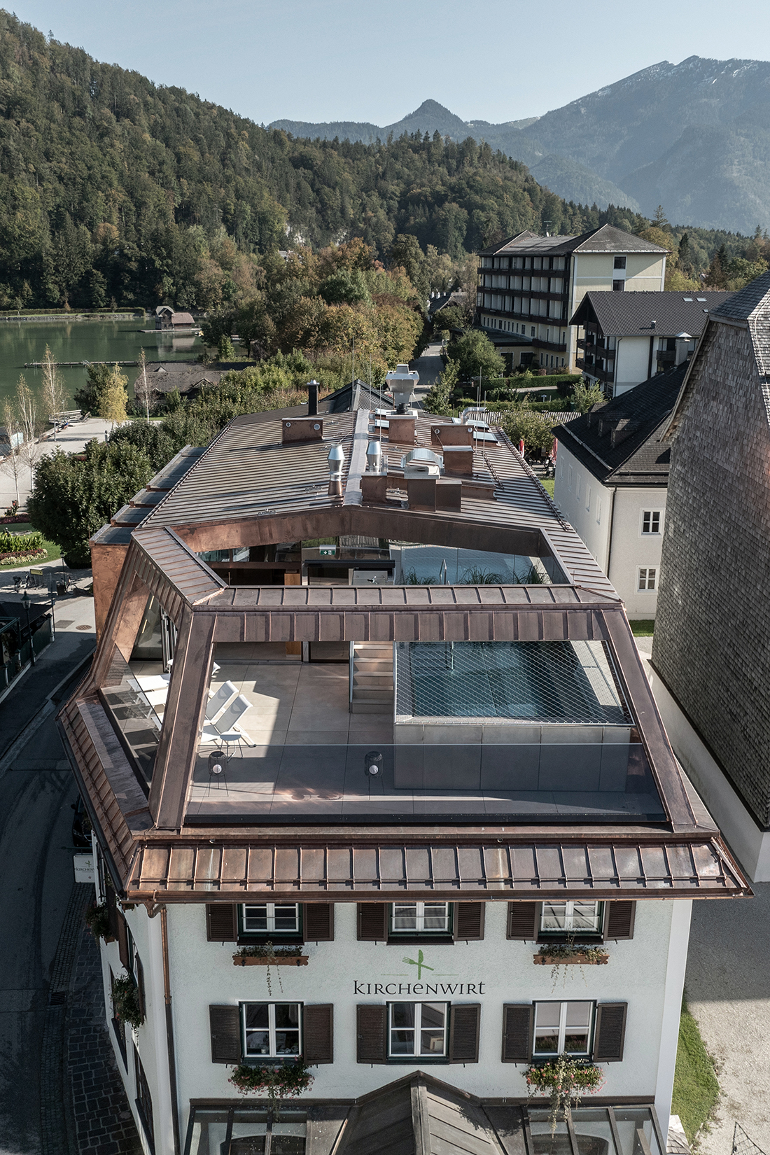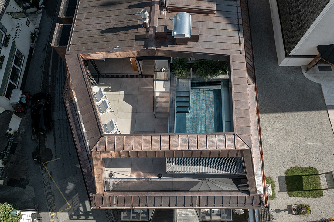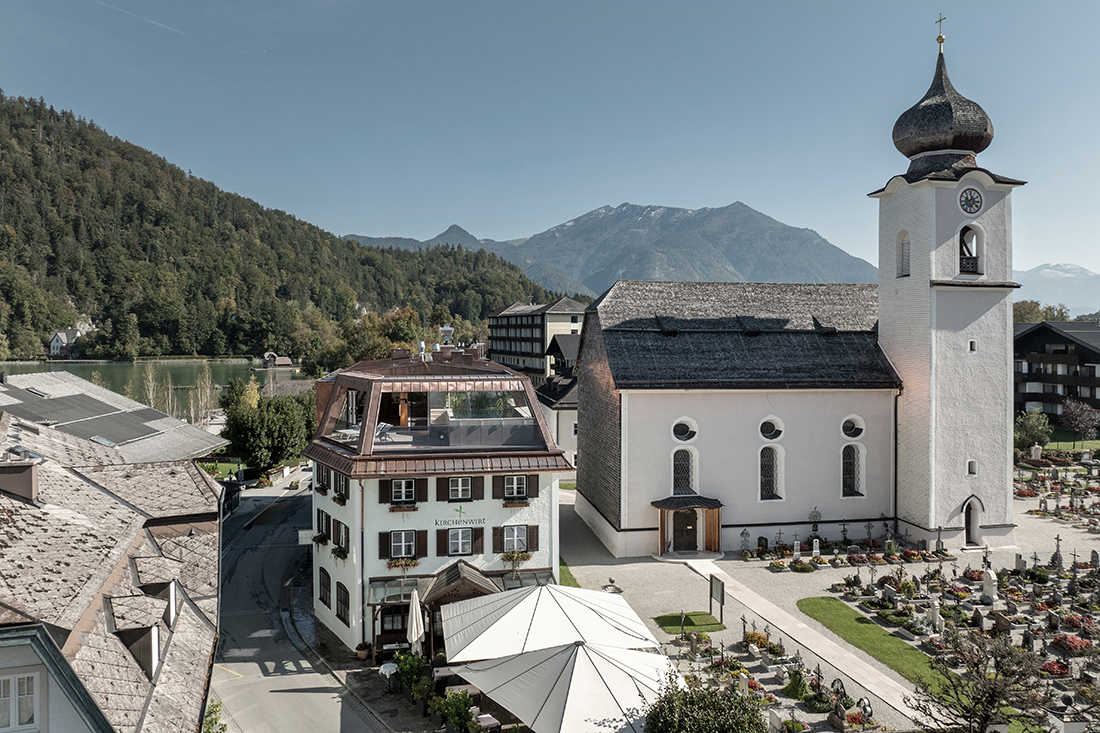 In the heart of Strobl am Wolfgangsee, the traditional Hotel Kirchenwirt is located. To meet the needs of a modern town hotel, some rooms on the first and second floors were modified. As part of this, the roof of the southeast part of the building was raised, and a wellness area was integrated. The design aimed to capture the magnificent views of the lake and mountains while seamlessly integrating with the existing structure of Strobl. In addition to the formal considerations, the structural challenge was significant due to the building’s existing condition.
