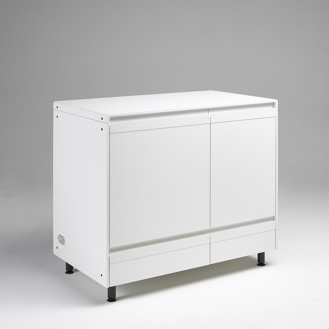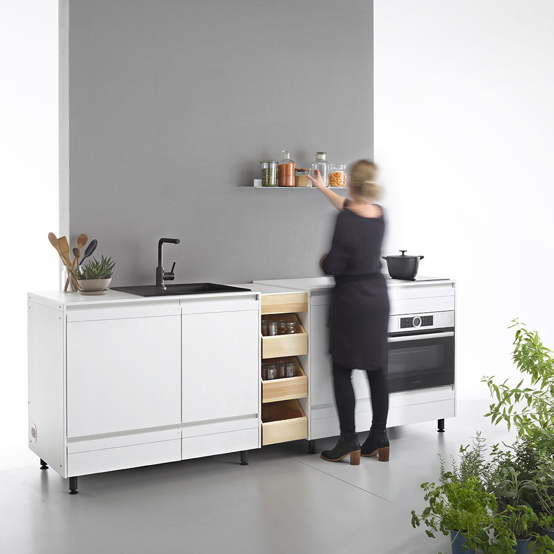 The clear, simple design invites creativity, allowing users to play with color and design combinations. The technical design is also highly efficient, with a well-thought-out construction that allows different cabinet types to be stacked and united within a cohesive outer encasement. This modular construction provides all necessary installation space and emphasizes the brand’s core value of independence for all users.