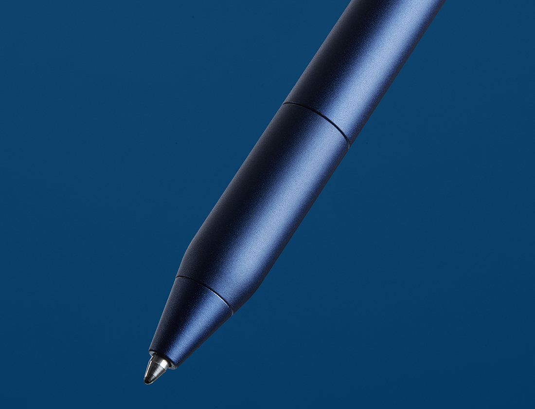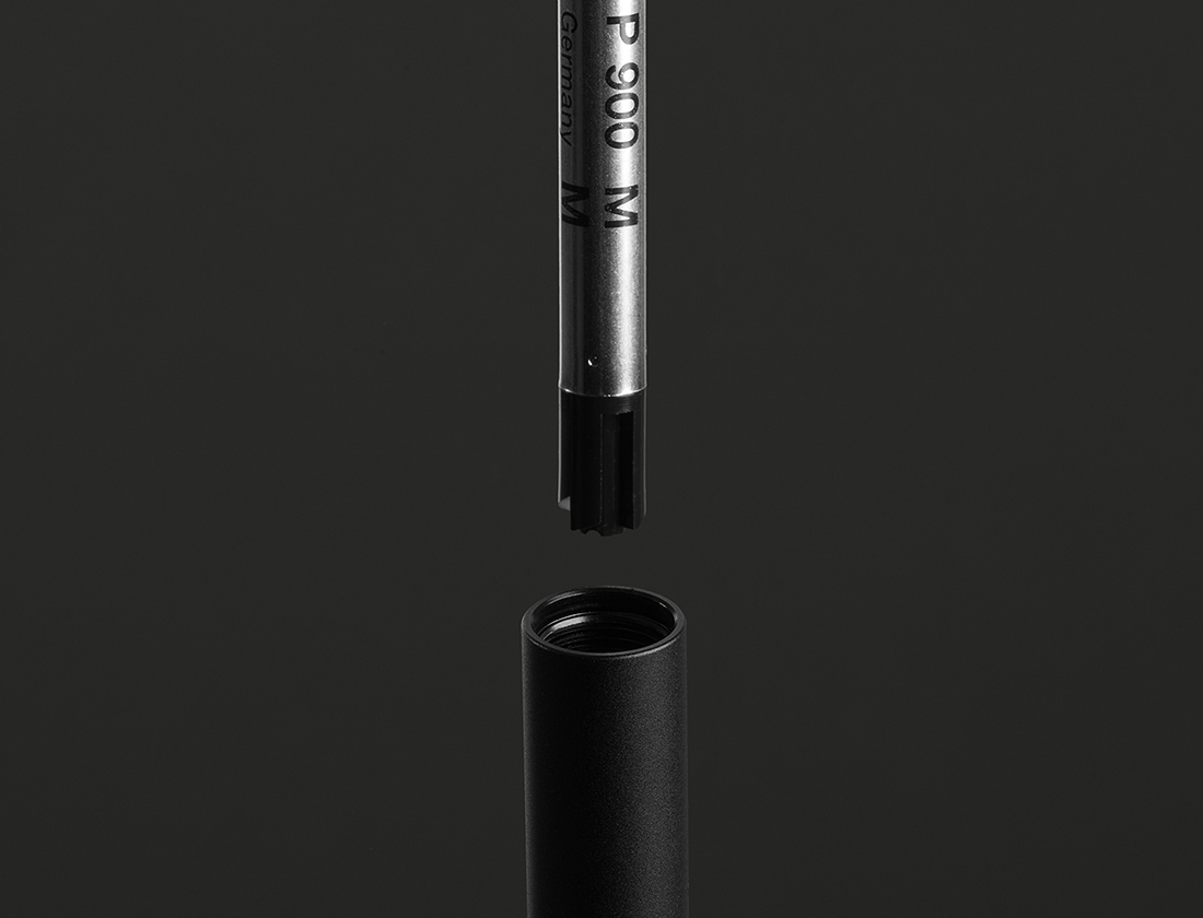 At 22g, this solid aluminum ballpoint pen offers perfect hand weight and feel for an exceptional writing experience. The pen features a twist-action mechanism and a unique kink design to ensure it won’t roll. Constructed from recyclable aluminum for longevity and a perfected weighted feel, it is refillable with Schmidt P900M ink cartridges for sustainable use.