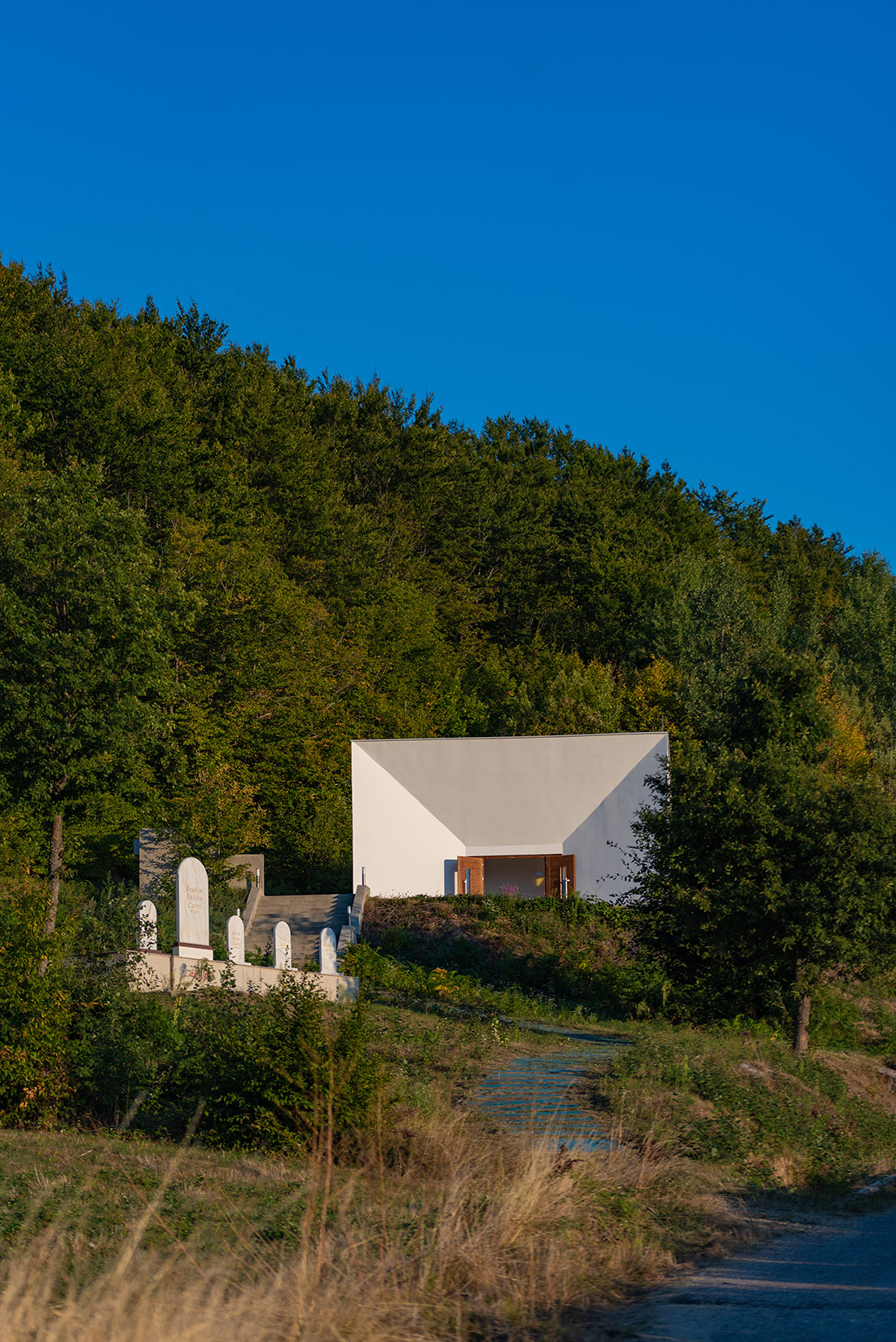 The main design approach was to create a comfortable, functional, and spiritually uplifting space for the small Albanian Islamic community at minimal cost. This strategy led us to adopt a very modest approach, from the dimensions of the building to the choice of construction materials. Indeed, modesty aligns with the philosophical essence of Islam, with principles like sincerity, heartiness, and purity being manifested in the space through pure geometric forms and a white color scheme both inside and outside the building.