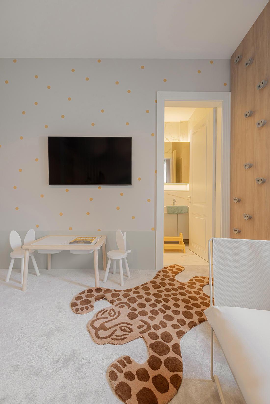 The project involved the interior design of a 100 m² apartment in Belgrade for a family of four, a young married couple with twins. The scope included organizing the pre-defined rooms and converting the guest room into a children’s room with a dedicated play area. The clients requested the use of warm, neutral tones with one dominant color, along with subtle wall decorations and a minimalist design approach.