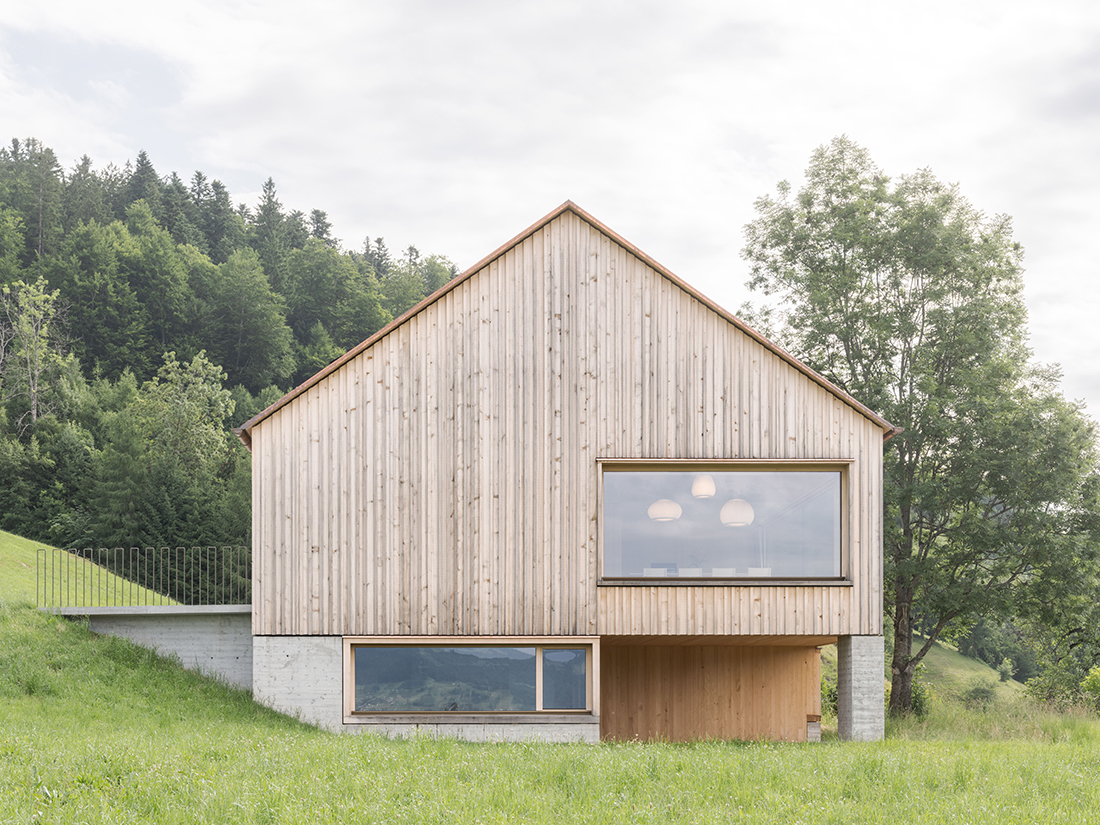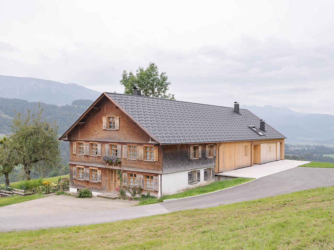 The dilapidated farm building, which was over 100 years old, was demolished and replaced by a residential building in the style of a stable. The shingled residential wing of the former farm, typical of the Bregenzerwald region, remained unchanged. The design of the new building is based on the stylistic elements of a stable.