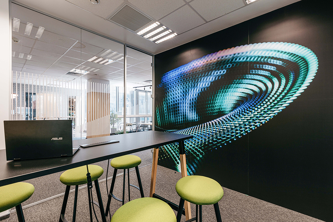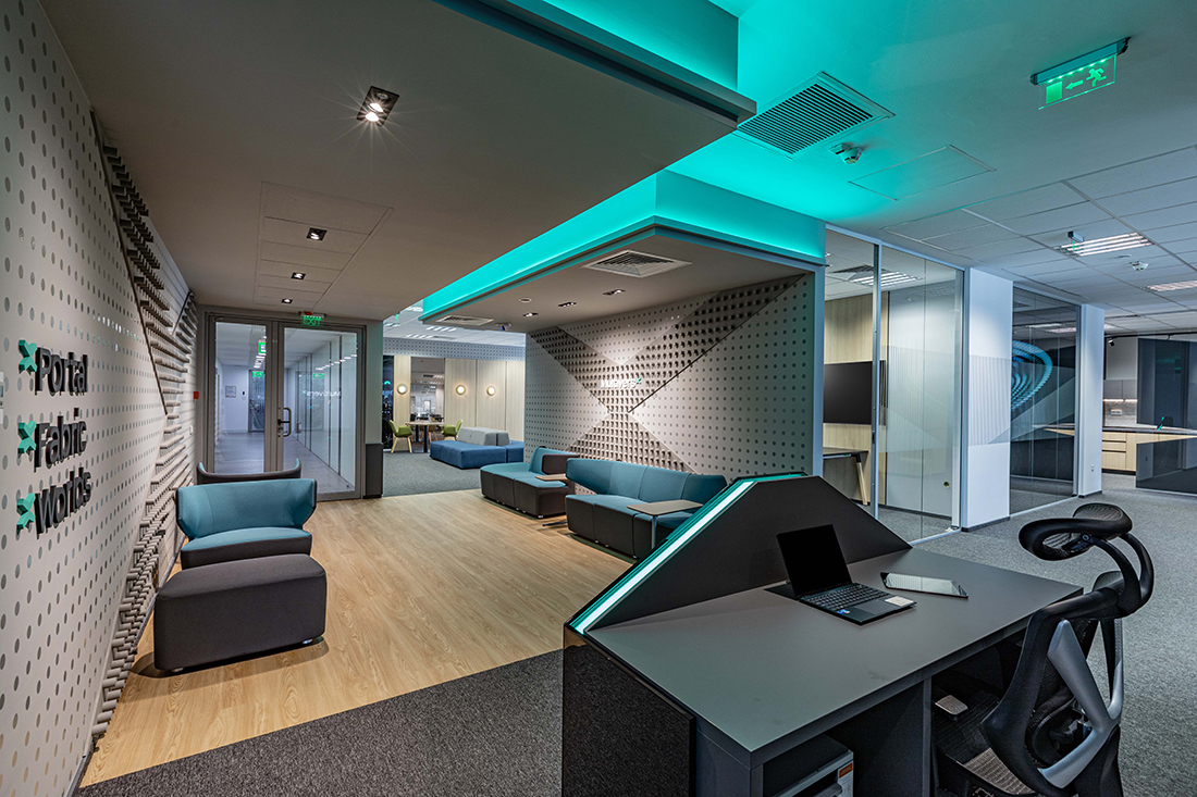 The MultiversX project is a bold interior design concept for a company that defines itself as “a highly scalable and secure blockchain network, enabling innovative applications for users, businesses, and society”. Fueled by passion and vision, we sought to craft a space that mirrors MultiversX’s brand values and bridges the digital and physical realms.