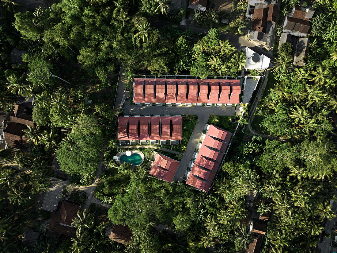 Musholla (Islamic Chapel) is shaped by its trapezoidal site and divided into two volumes – the prayer hall and its service wing. The main space is surrounded by a covered veranda, clad in perforated bricks that filter sunlight and create a shaded zone for gathering and reflection. The brick lattice produces a poetic play of light and shadow, enriching the spiritual atmosphere within.