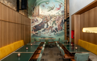 This restaurant bar draws its inspiration from a blend of mid-century Manhattan venues, Wes Anderson’s whimsical aesthetics, and the refined comfort of