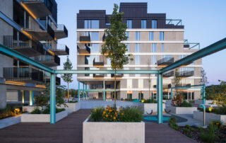River Apartments is a modern residential complex comprising two buildings – 7 and 8 storeys high –