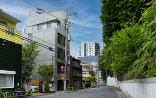 This five-story, nine-unit studio apartment complex is located in the heart of Tokyo. The site is compact, measuring just
