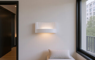 This double-emission wall fixture creates a calm, warm atmosphere that radiates from its source and gently envelops the surrounding space. The effect