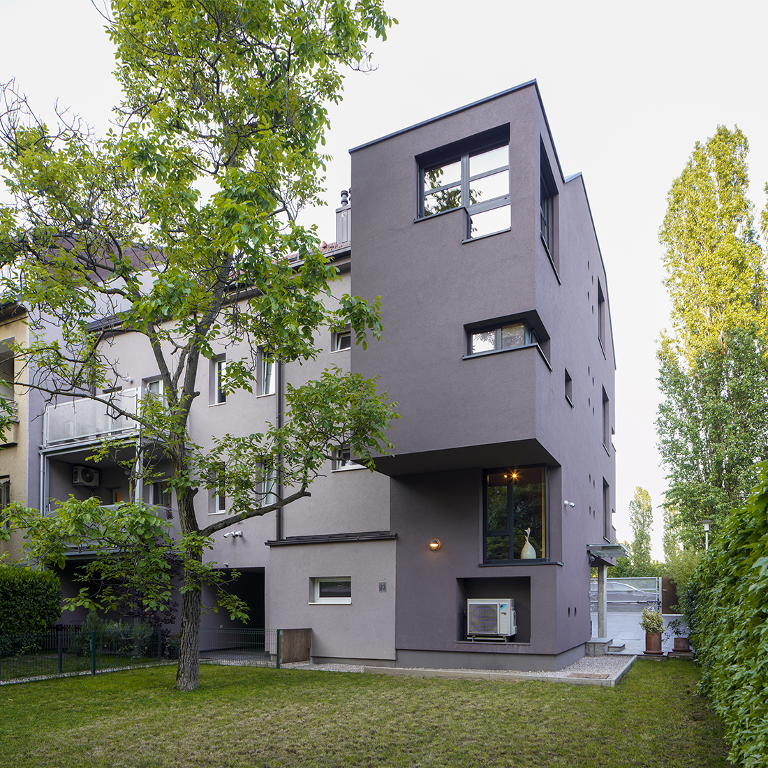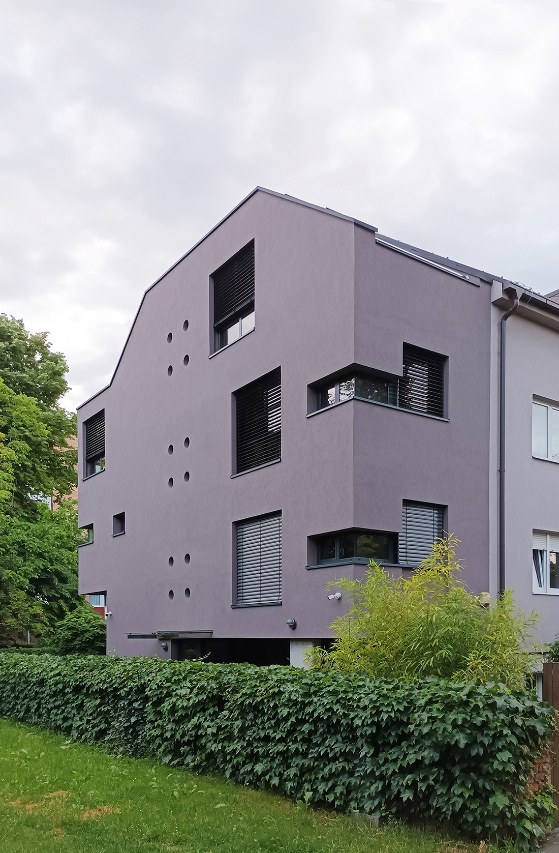 The idea for the development of the narrowest house in Zagreb stemmed from the planning possibilities for building a narrow, semi-detached house abutting onto an existing residential building. Additional spurrs to the choice of site were an appealing position in the midst of pedestrian zones and the southern orientation of the long side, facing onto a park. Planning conditions enabled a structure, compatible with the volumes of the neighboring two houses, at a distance of 3 m from the edge of the plot. For this reason, the interior width comes to 2,65 m, and width of the narrow façade is 3,25 m. The design was based on a split-level concept.