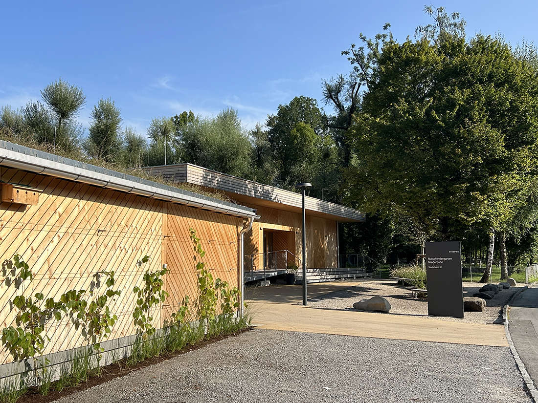 The Niederbahn Nature Kindergarten is organized into three distinct zones, ranging from the protected core zone to the public shaded park. The recreational forest is designed to provide a high-quality environment for both children and older people, ensuring comfort even during hot weather.