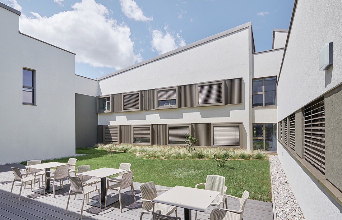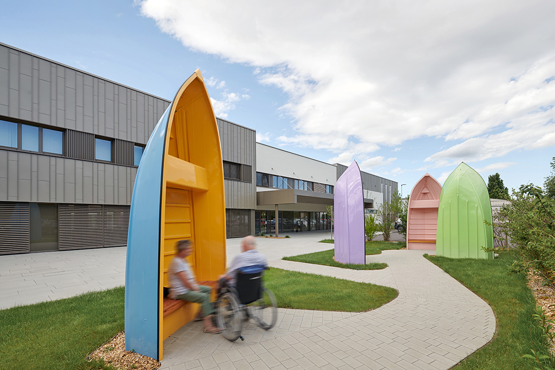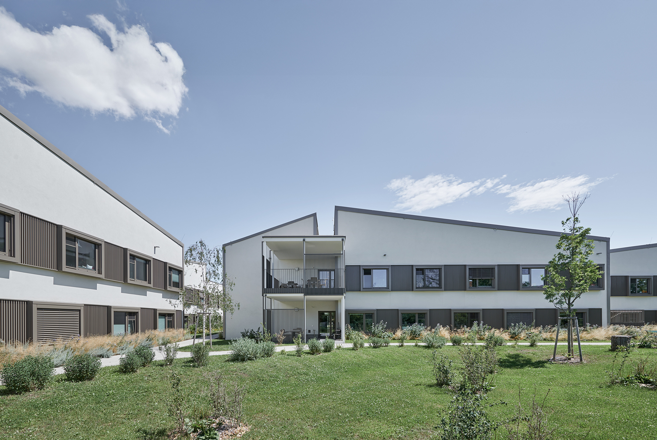 The result of our work on the redesign of the Himberg Nursing Home, with its diverse facilities ranging from “Long-Term Care & Dementia”, to “Geronto-Psychosocial Care & Support”, its “Public & Semi-Public Facilities”, and its “Business and Support” areas, presents itself, on the one hand, as a homogeneous building volume with the shortest possible access routes, while, on the other, its scale and roofscape create a sensitively structured ensemble.