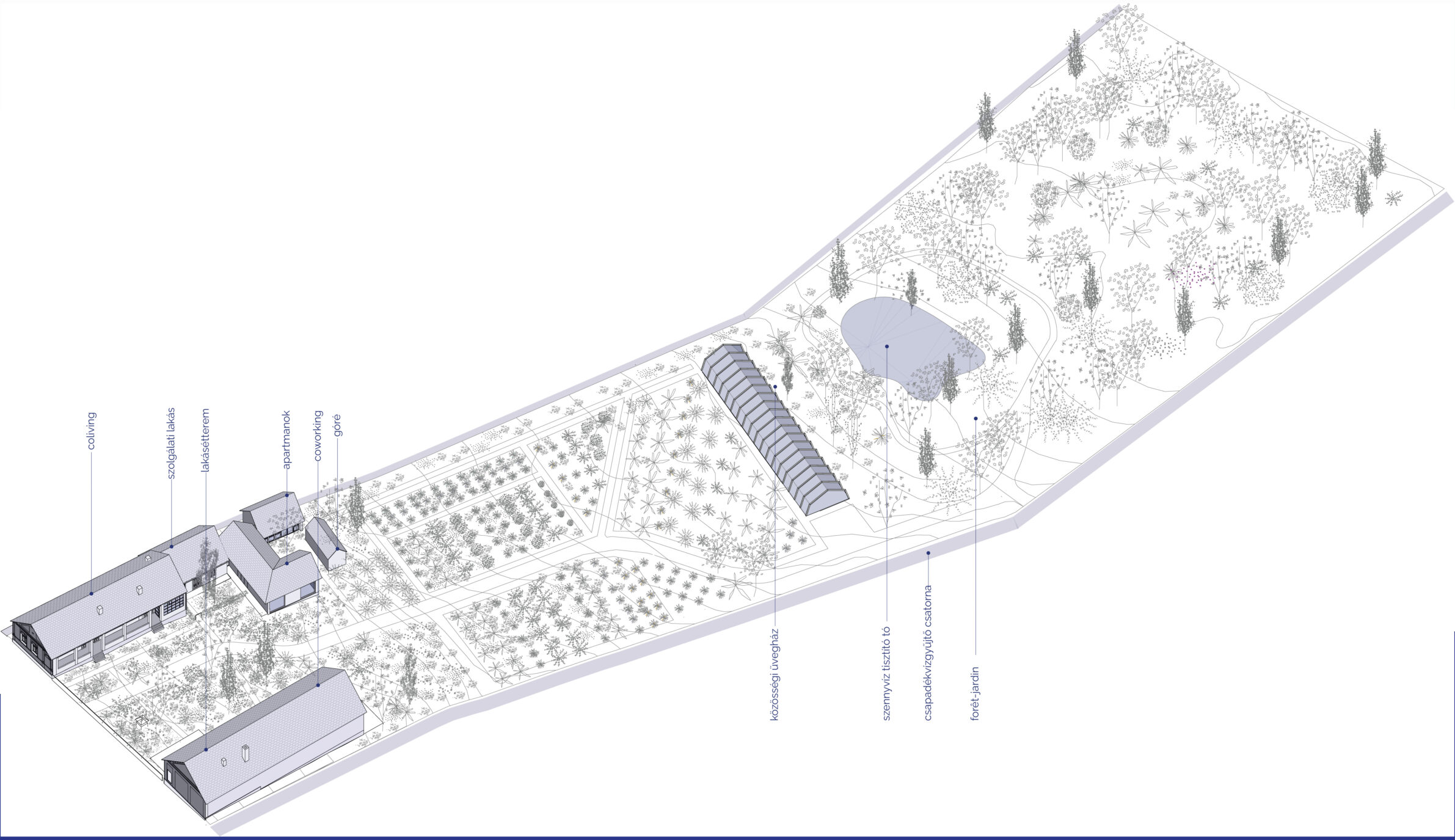 The project explores rural coworking spaces as hybrid environments where digital work and local life intersect. Through the design of a rural coworking centre in a small village in southern Hungary, it proposes an architectural approach based on slow design: a gradual, adaptive process where spaces evolve together with the community. Rather than delivering a finished object, the project frames architecture as a living system - capable of responding to changing needs, social interactions and the rhythms of rural life.