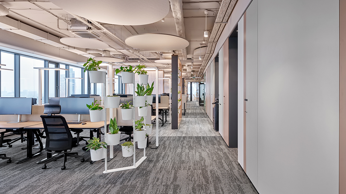 Flexible working hours and a hybrid work model have introduced new design requirements, emphasizing ergonomics, high-quality lighting, and overall comfort. The 12-story building is designed in a modular way, allowing for the efficient and balanced distribution of over 1.175 workstations.