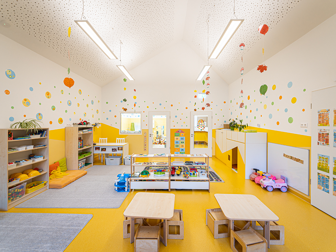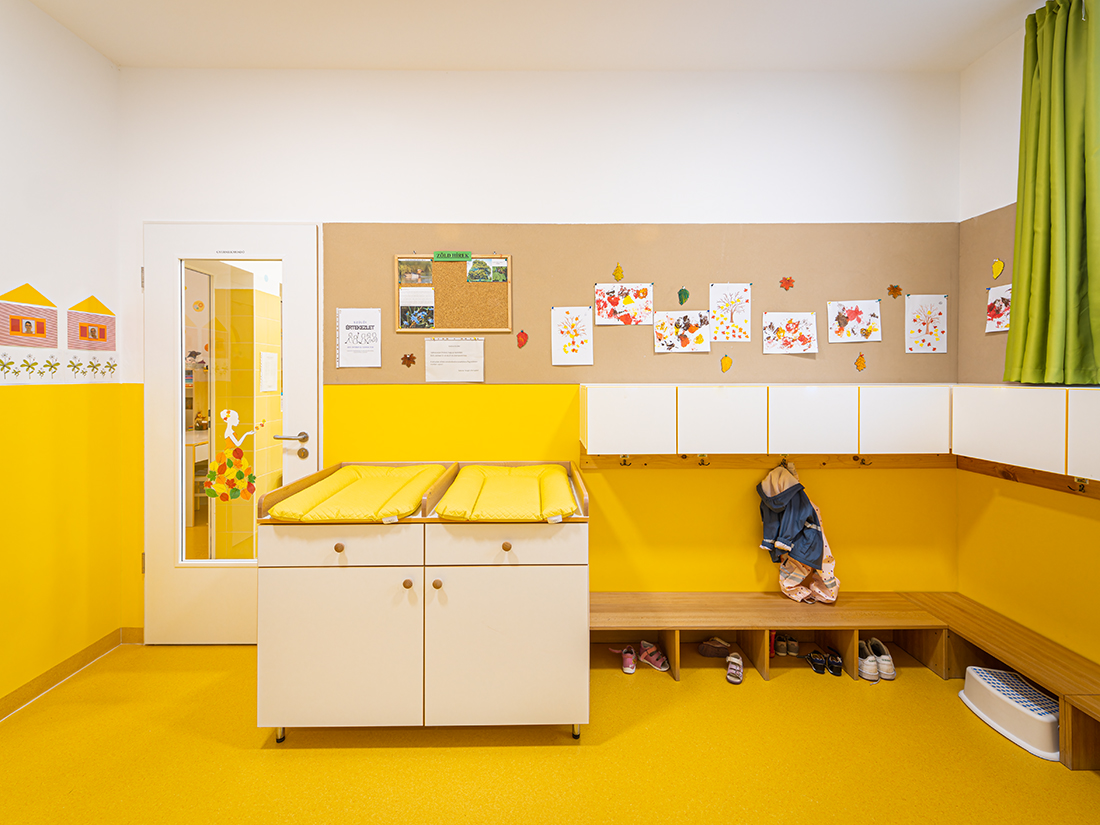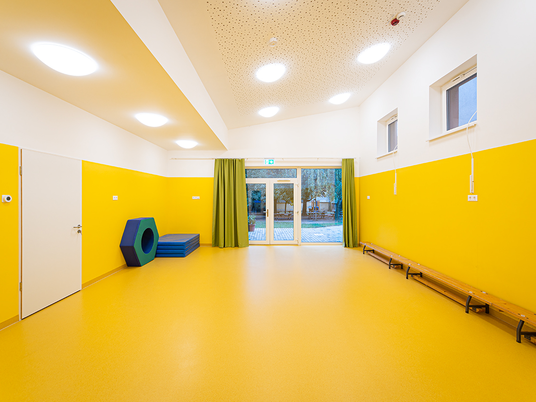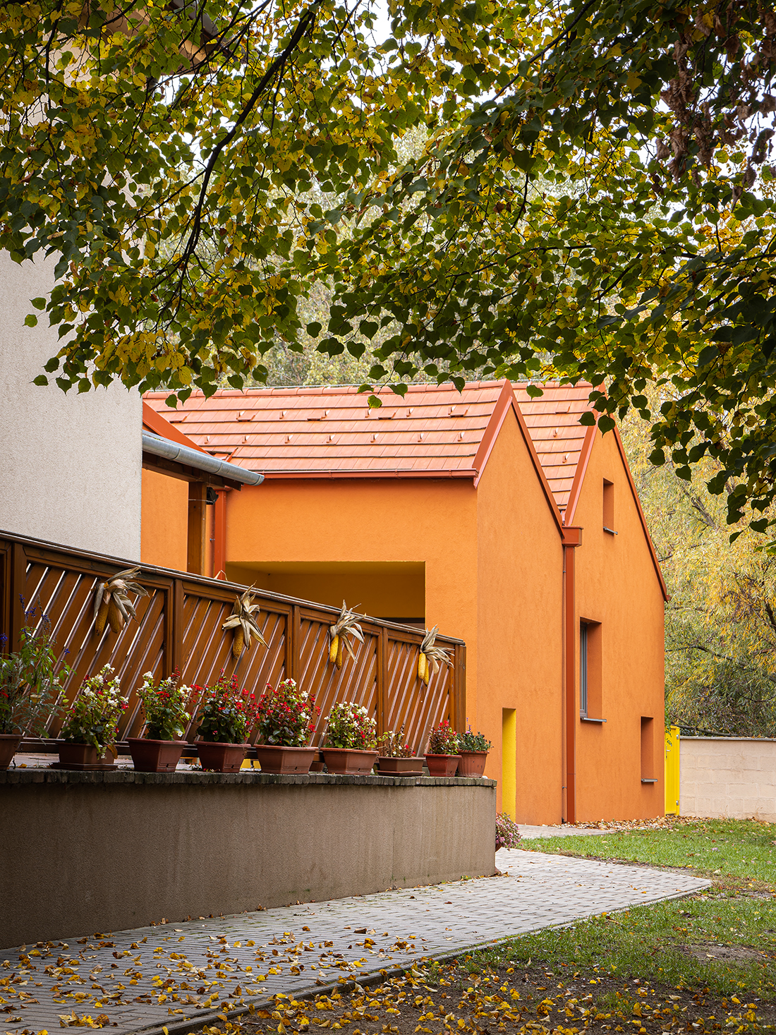 The project is an extension to the existing nursery building in the Municipality of Hegykő. The new spaces open directly towards the garden, enhancing the children’s connection to the outdoor play area. Passages of internal staircases resolve the level difference between the old and new structures.