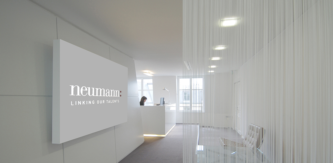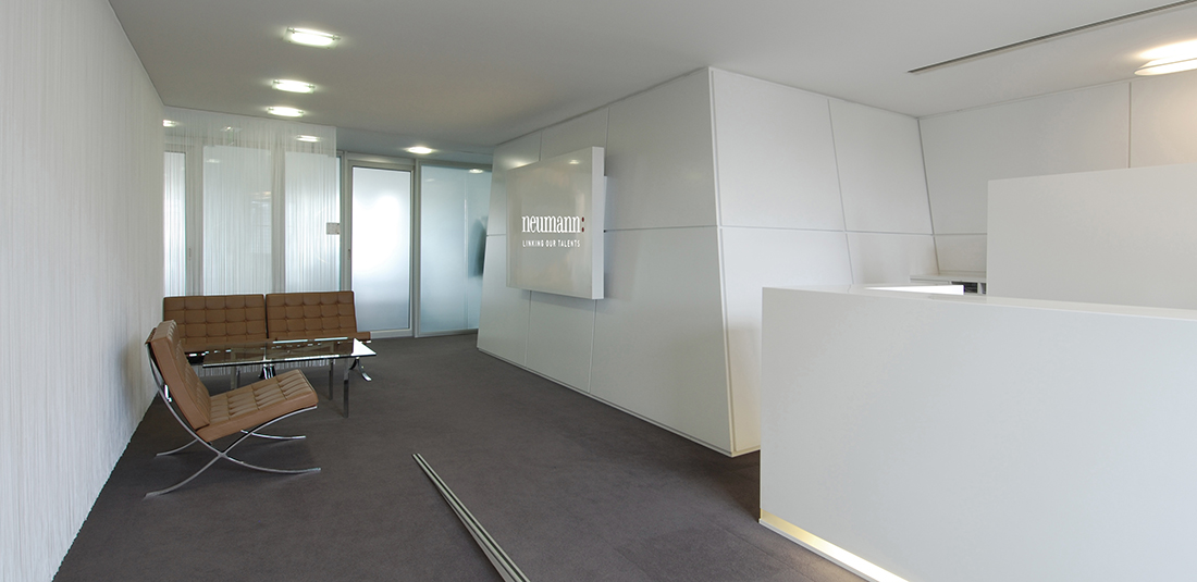 The executive search company Neumann International oversaw a growing number of headquarters worldwide. To establish a consistent corporate image, Armin Stocker was commissioned to design an architectural Corporate Identity that would account for local conditions and fundamental spatial parameters, ensuring seamless adaptation across various rented office locations.