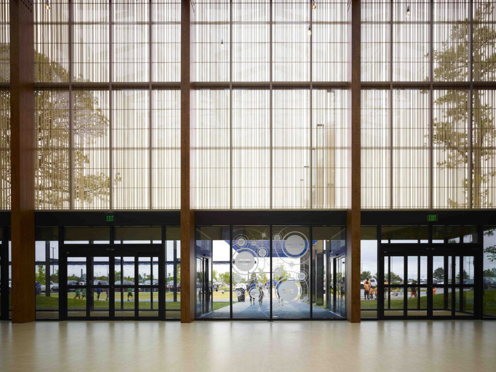 The delicate wooden slats integrate seamlessly into the glass structure and are suitable for both façades and interior design applications. Whether used for privacy screening, sun protection, or as a design element, OKAWOOD now offers even greater versatility, inviting architects to explore sophisticated design options. This version features vertically aligned wooden slats, allowing for a customized layout of the wooden grid and enabling unique design ideas.