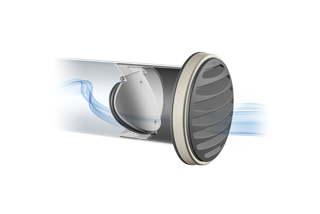 The uniquely shaped flap opens fully to optimize airflow, while the all-round silicone seal creates a heat-insulating thermal zone. Thanks to these features, the integrated thermal backflow flap has been awarded the Blower Door certificate for its performance.