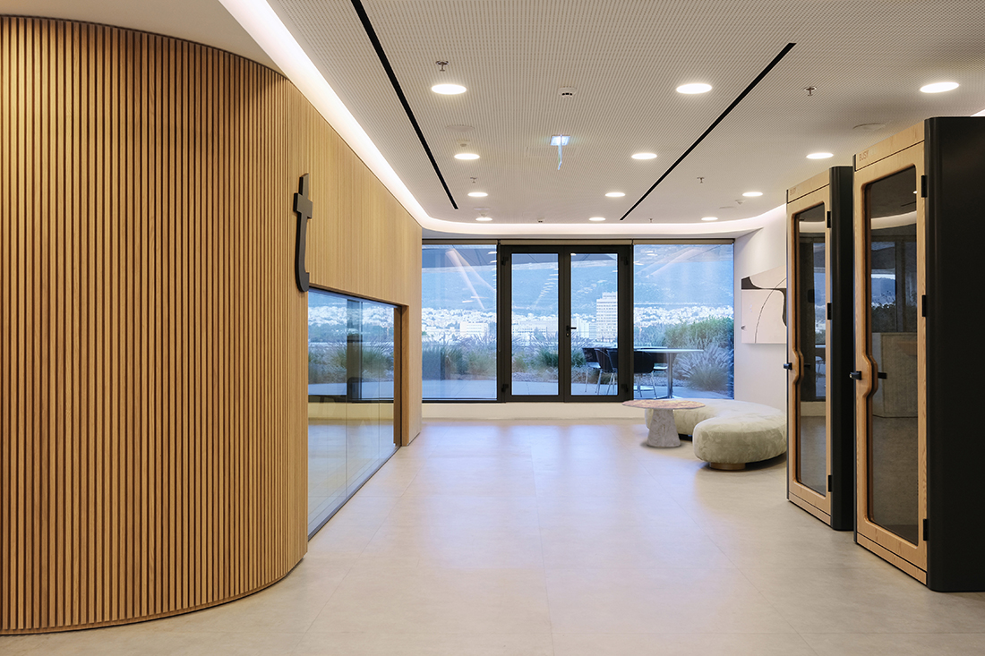 Our office was tasked with transforming the 8th floor of “The Orbit” building in Athens into a flexible workspace for the Ticketmaster headquarters. The design aimed to reflect the company’s vision for the future of entertainment within one of Greece’s most iconic and sustainable buildings. Departing from the original chaotic, open-plan layout, our approach focused on creating a dynamic workspace that balances areas for focused, private work with spaces that encourage socialization and collaboration.