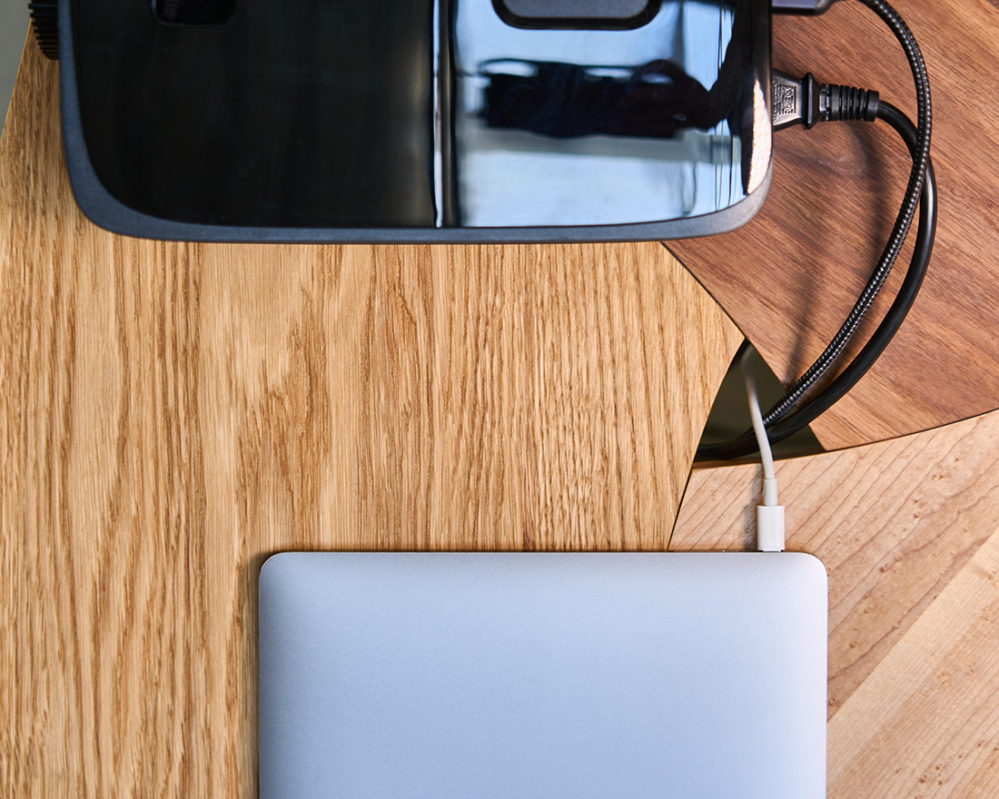 This table embodies a commitment to both artistic expression and functional design. Crafted from carefully selected deadstock solid wood – materials that would normally be discarded due to irregular dimensions – the tabletop is assembled like a puzzle, producing an organic yet structured aesthetic. Each piece is precision-cut using CNC technology for a seamless fit and anchored by a durable steel frame. Integrated cable management ensures a clutter-free workspace, making the table ideal for both creative and professional environments.
