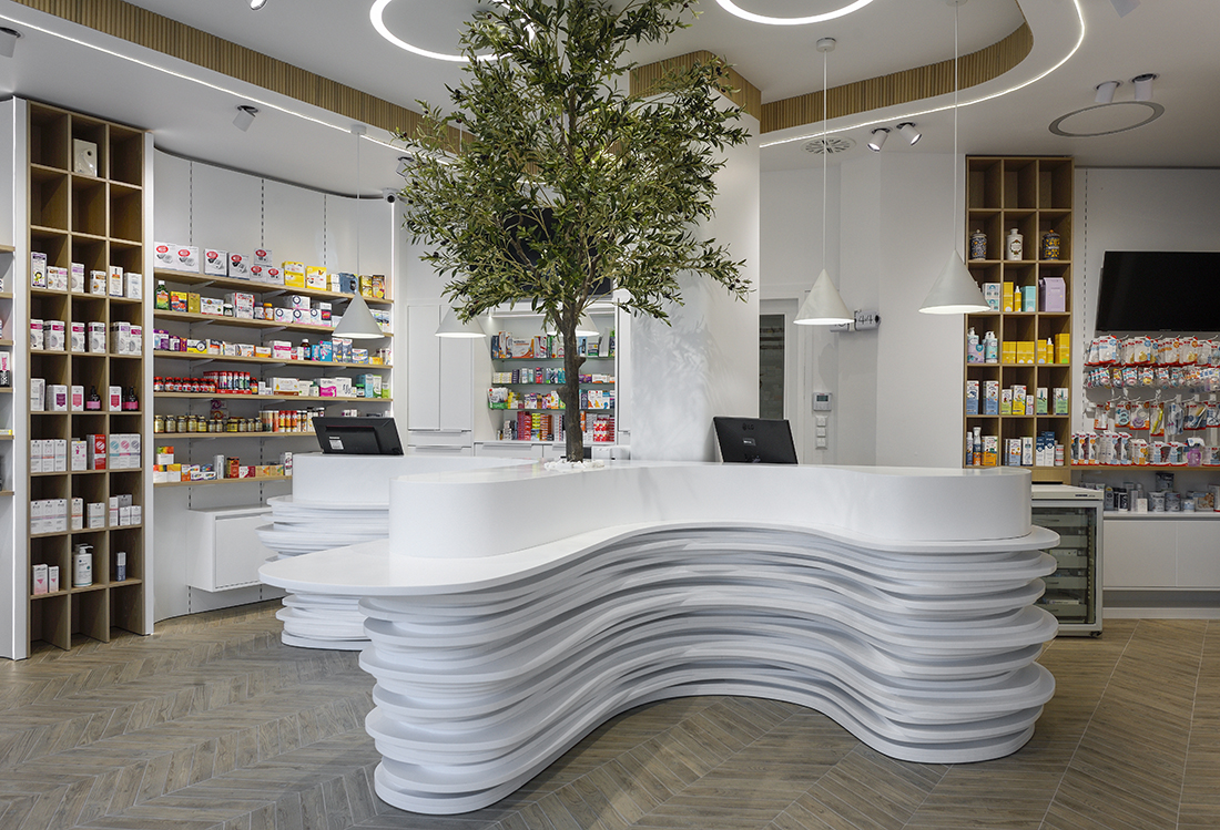 The project required careful study on multiple levels to balance functionality with aesthetic appeal. Efforts focused on meeting the necessary specifications for a pharmacy, aligning with the client’s aesthetic preferences, and ultimately creating a space with a commanding presence that distinguishes it from the competition.