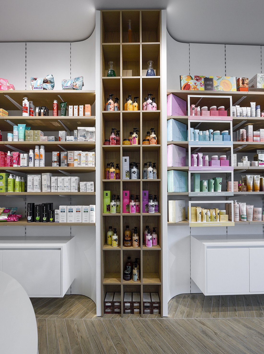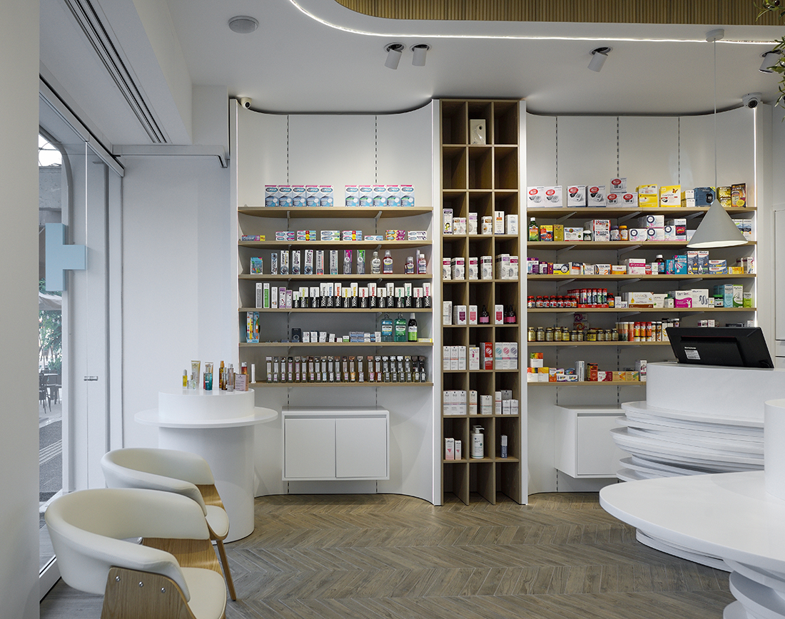 Interior Architect Ioannis Koukouras designed a new pharmacy in the city of Drama, avoiding the stereotypes and clichés often associated with pharmacy design while retaining the essential characteristics that ensure functionality.
