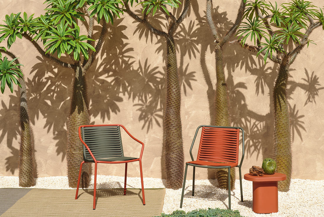Designed by Odo Fioravanti, Philía is an outdoor seating collection inspired by traditional Italian garden chairs, evoking the relaxed, open-air lifestyle of the Italian “dolce vita” of the 60s era.