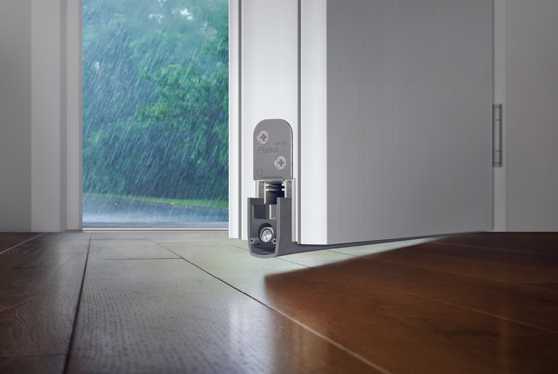 With the new generation of the Planet X3 drop-down seal, we offer now a future-proof, accessible door solution, which, in combination with the modular click threshold system, is ideally suited for new construction and renovations. The new Planet X3 drop down seal is highly functional and has now received several certifications. It is absolutely impervious to driving rain, in accordance with standard 7A/9A and is suitable for single-leaf and double-leaf entrance doors and balcony doors.